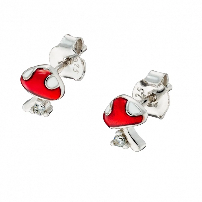 Oxzen ασημένιο παιδικό σκουλαρίκι μανιτάρι με σμάλτο