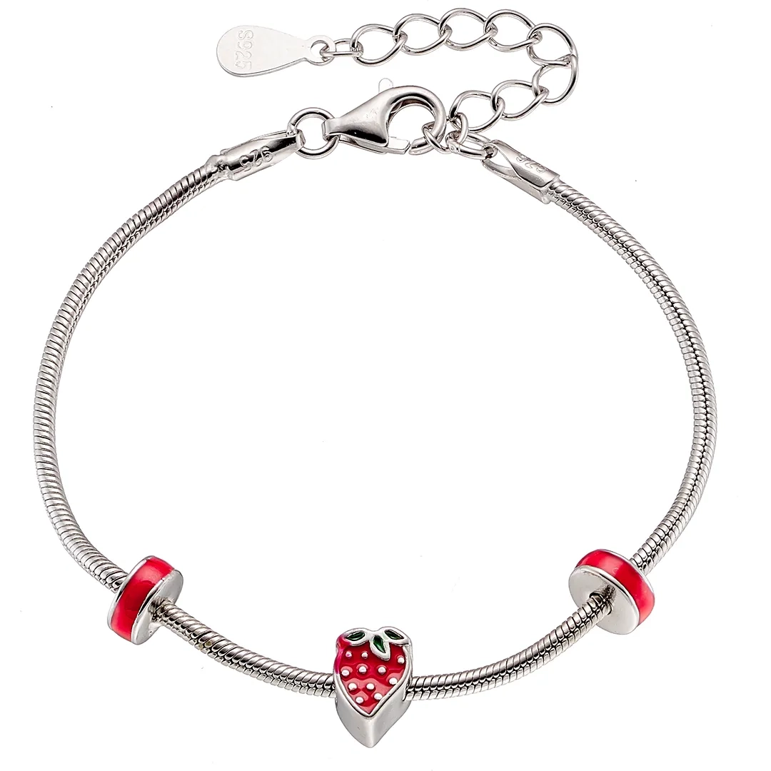 Oxzen ασημένιο παιδικό βραχιόλι επιπλατινωμένο με φράουλα