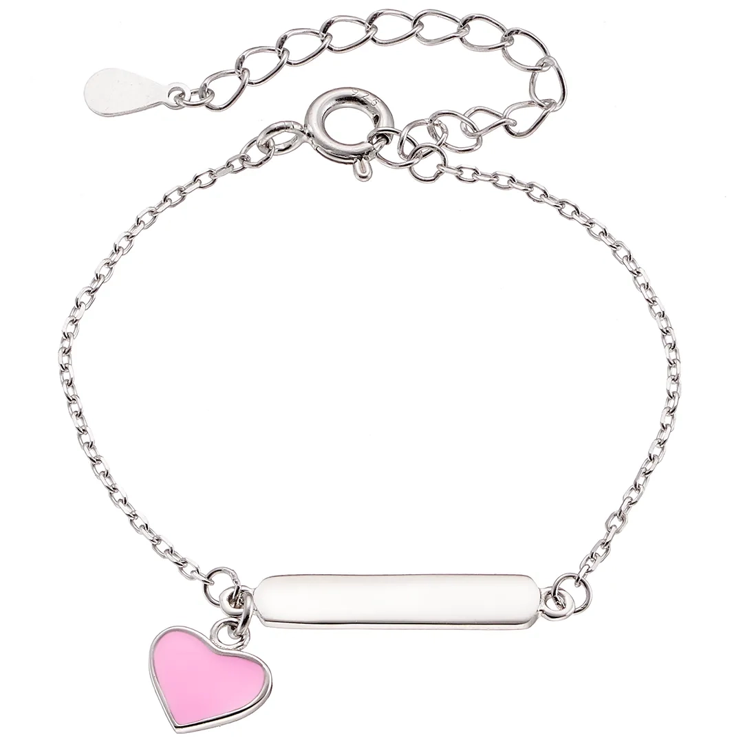 Oxzen ασημένιο παιδικό βραχιόλι επιπλατινωμένο ταυτότητα με ροζ καρδιά