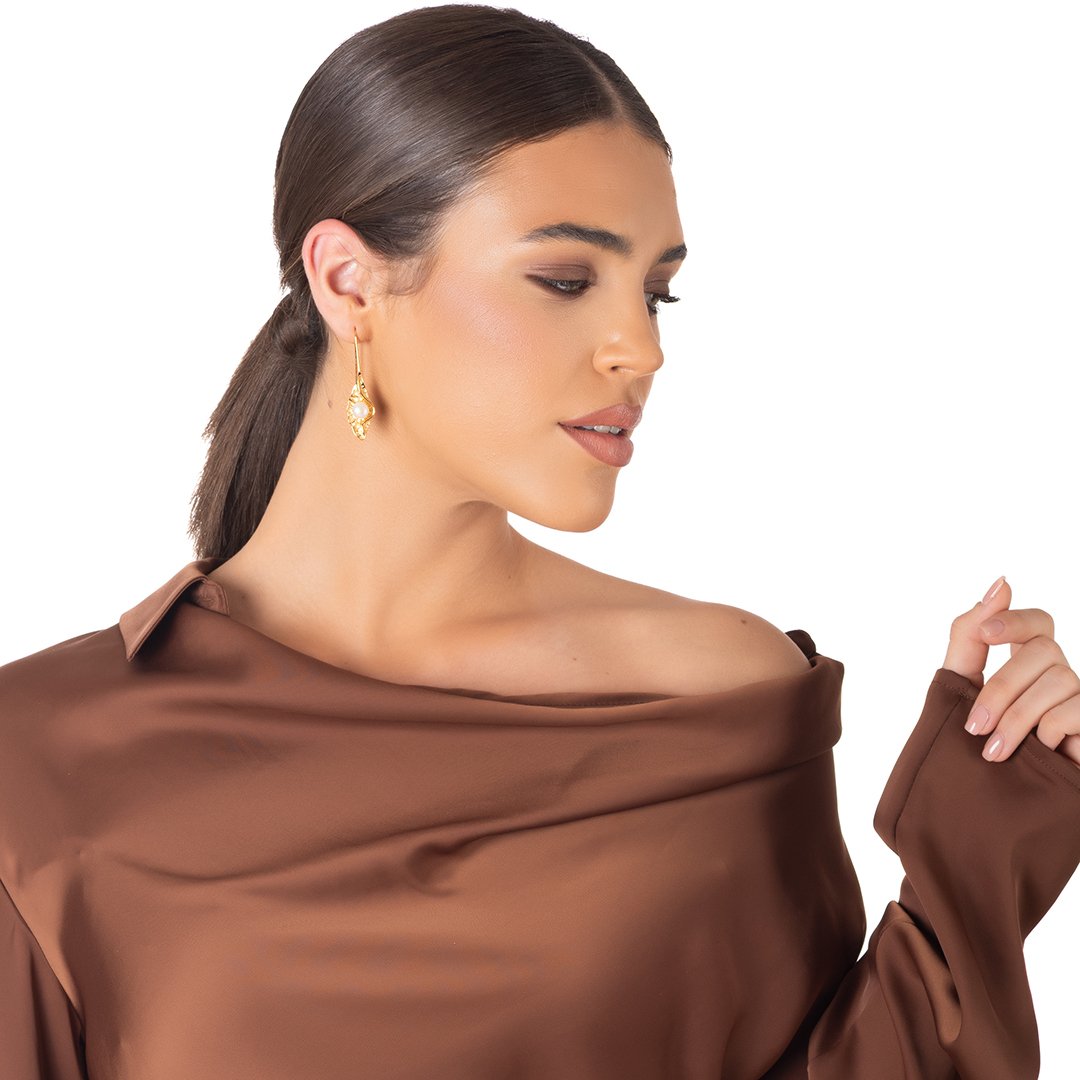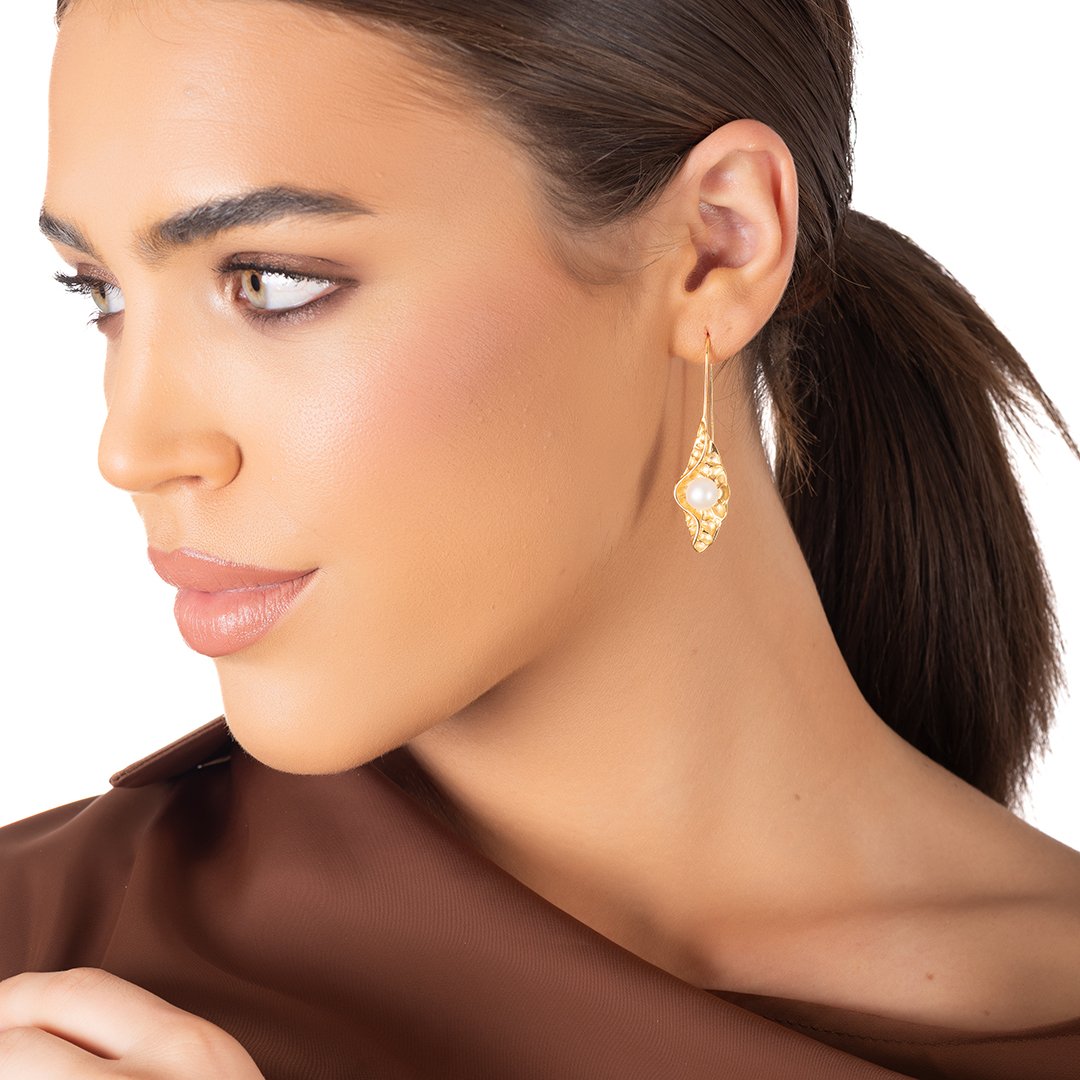 Oxzen ασημένιο σκουλαρίκι χειροποίητο με πέρλα