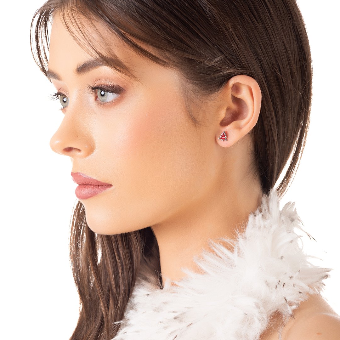 Oxzen ασημένιο σκουλαρίκι χριστουγεννιάτικο δέντρο