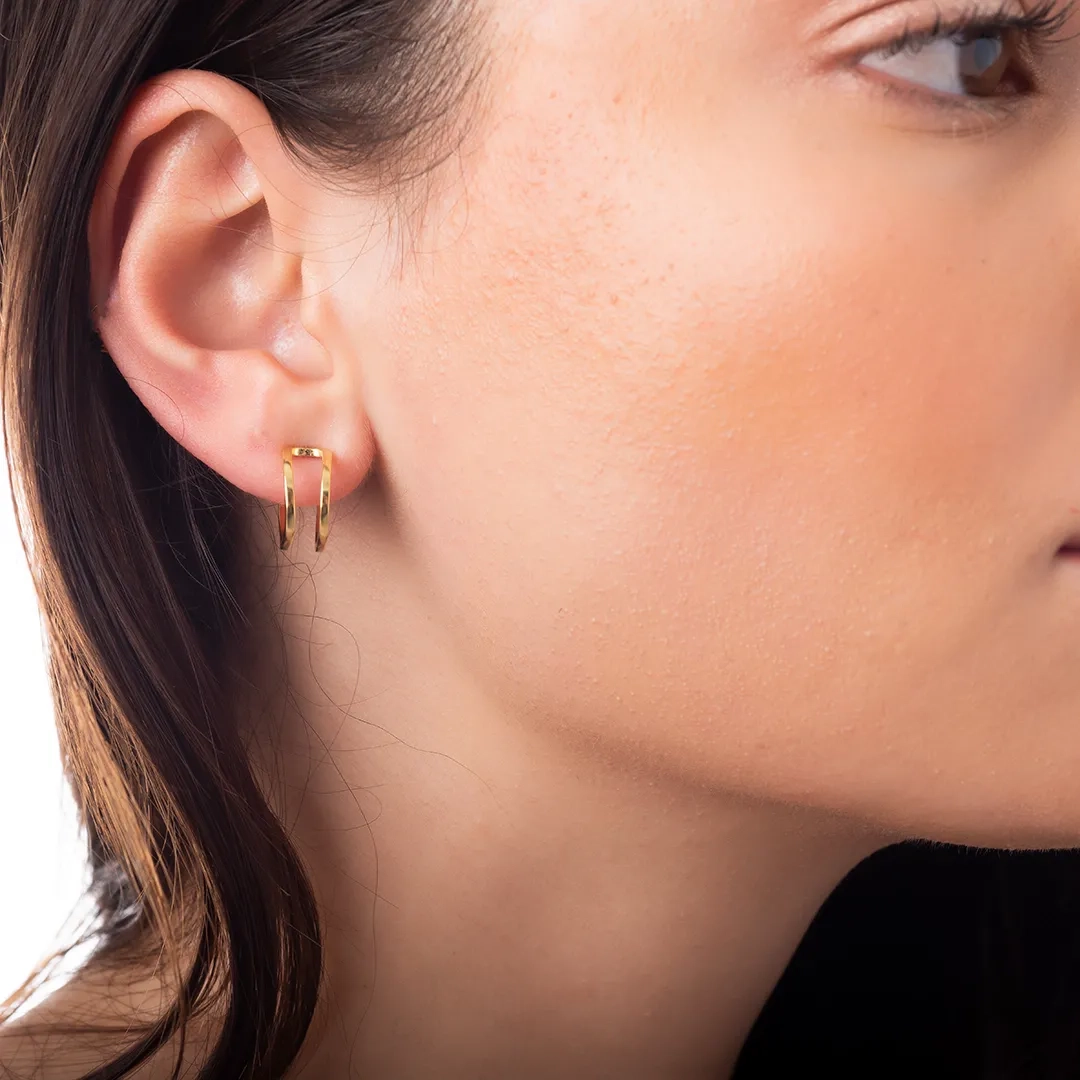 Oxzen ασημένιο σκουλαρίκι διπλός κρίκος