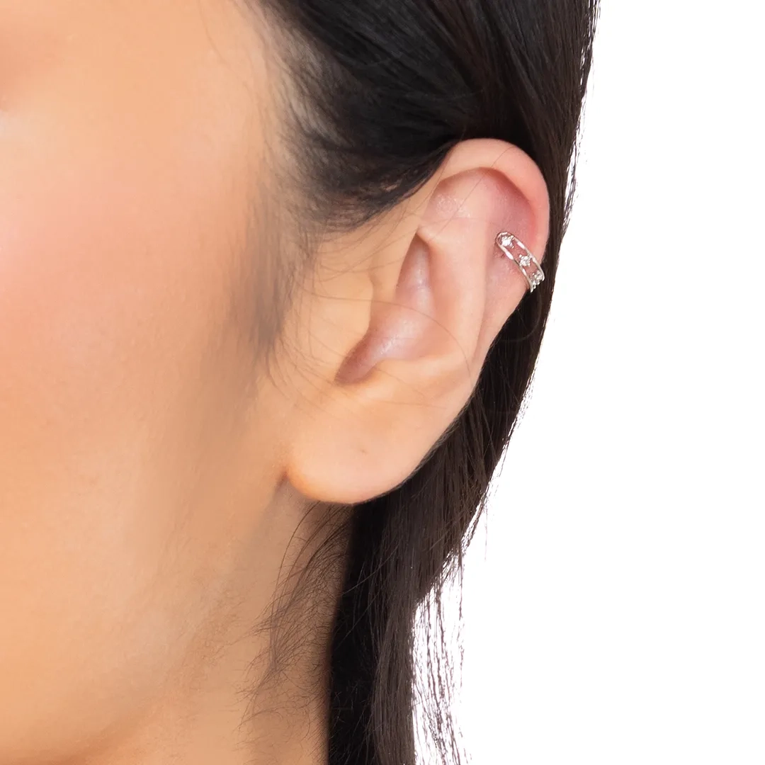 Oxzen ασημένιο σκουλαρίκι Ear Cuff με λευκά ζιργκόν