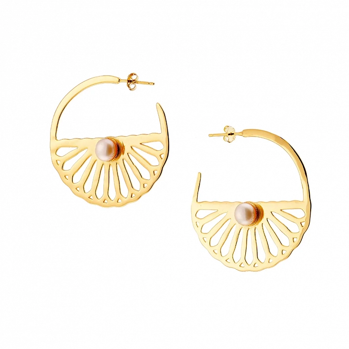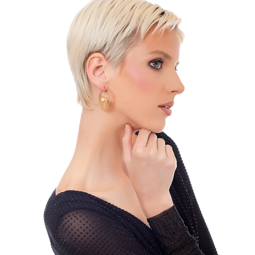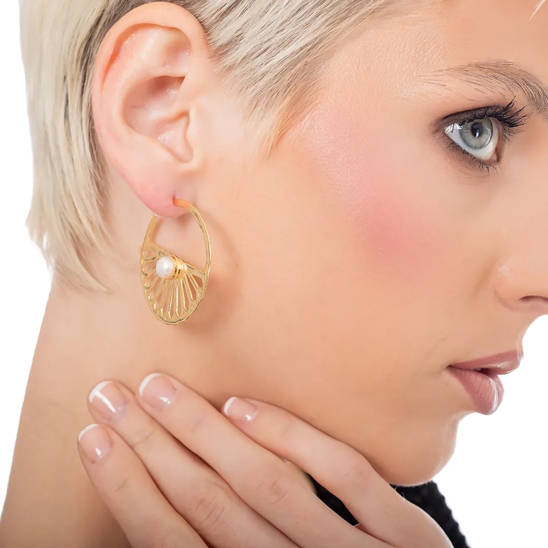 Oxzen ασημένιο σκουλαρίκι επιχρυσωμένο χειροποίητο κρίκος με πέρλα