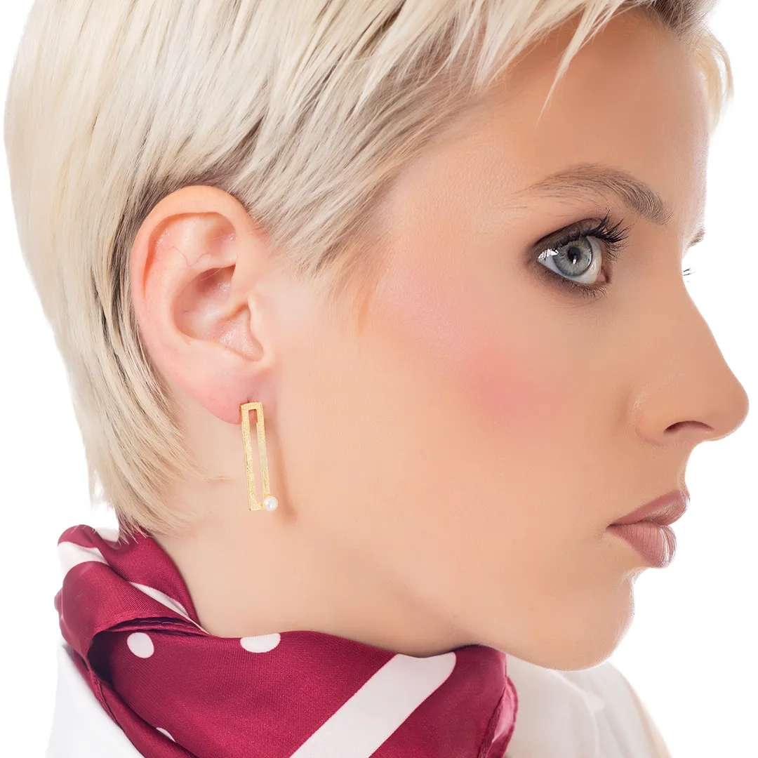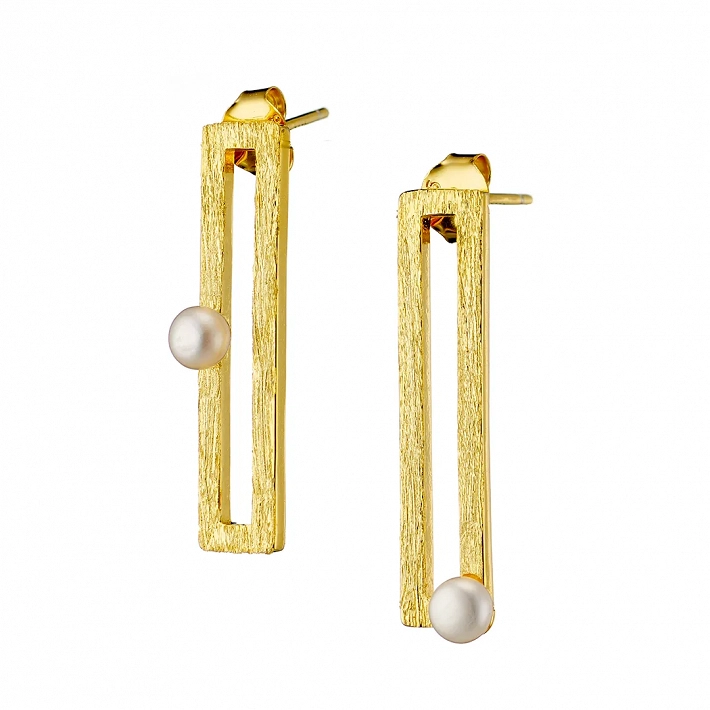Oxzen ασημένιο σκουλαρίκι επιχρυσωμένο χειροποίητο με πέρλα