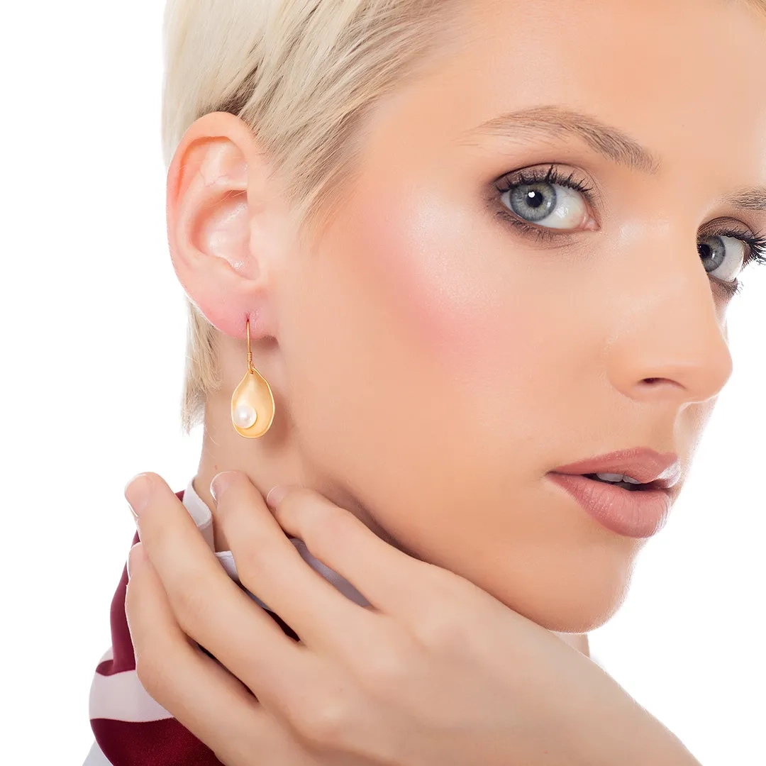 Oxzen ασημένιο σκουλαρίκι επιχρυσωμένο χειροποίητο με πέρλα