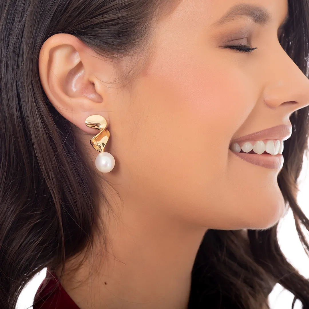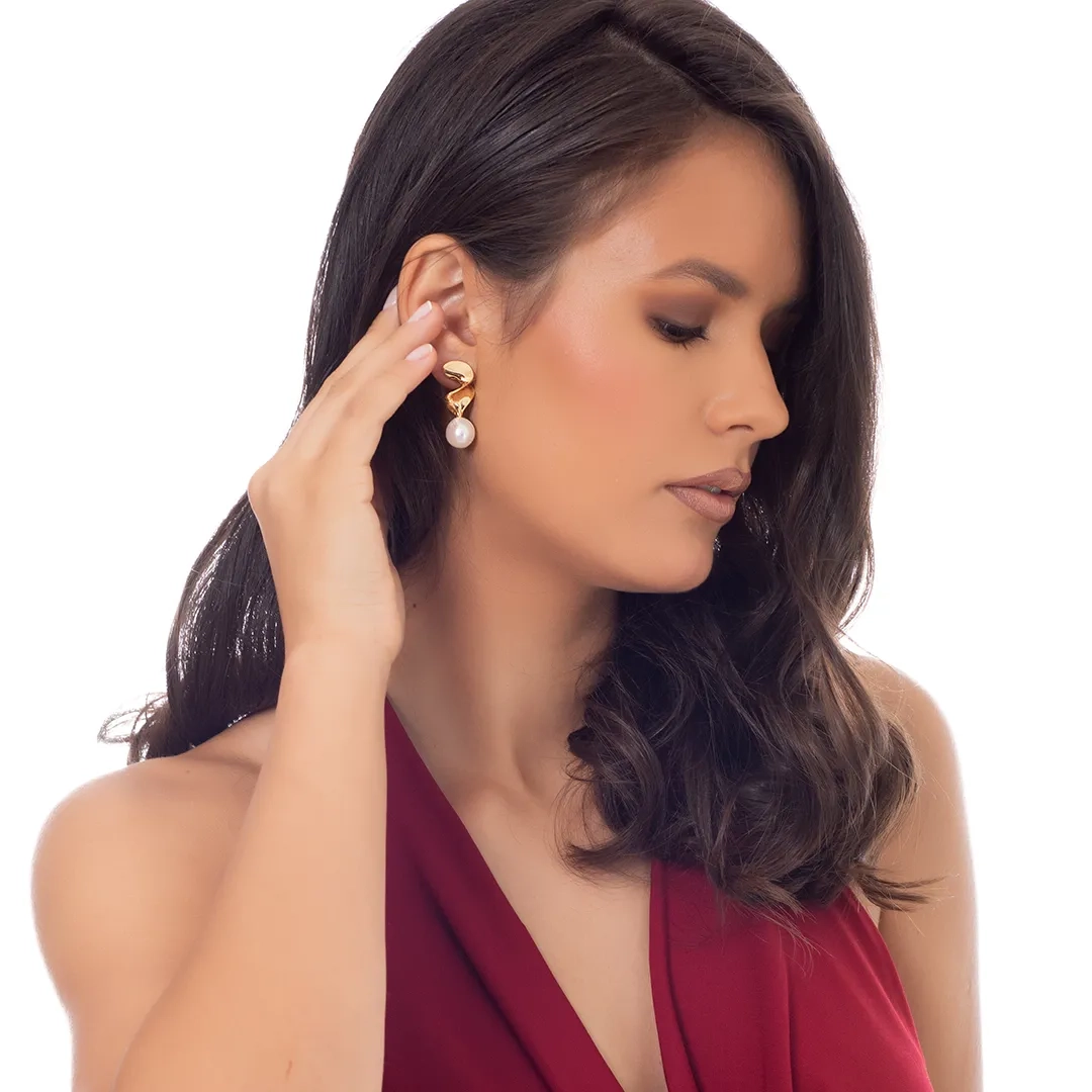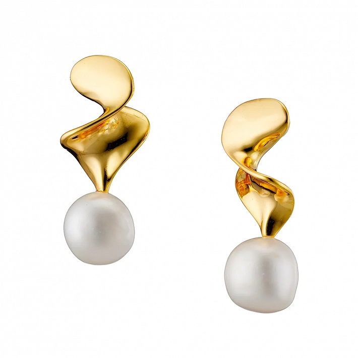 Oxzen ασημένιο σκουλαρίκι επιχρυσωμένο χειροποίητο με πέρλα