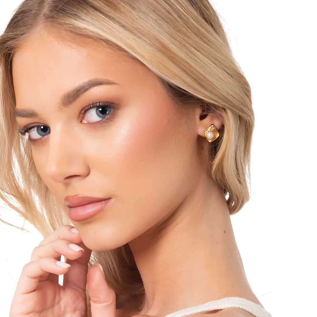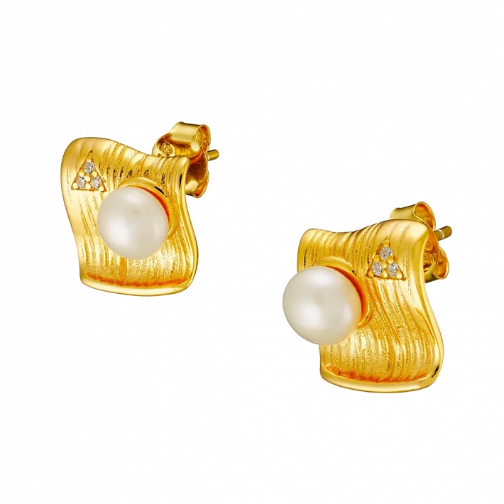 Oxzen ασημένιο σκουλαρίκι επιχρυσωμένο με πέρλα χειροποίητο