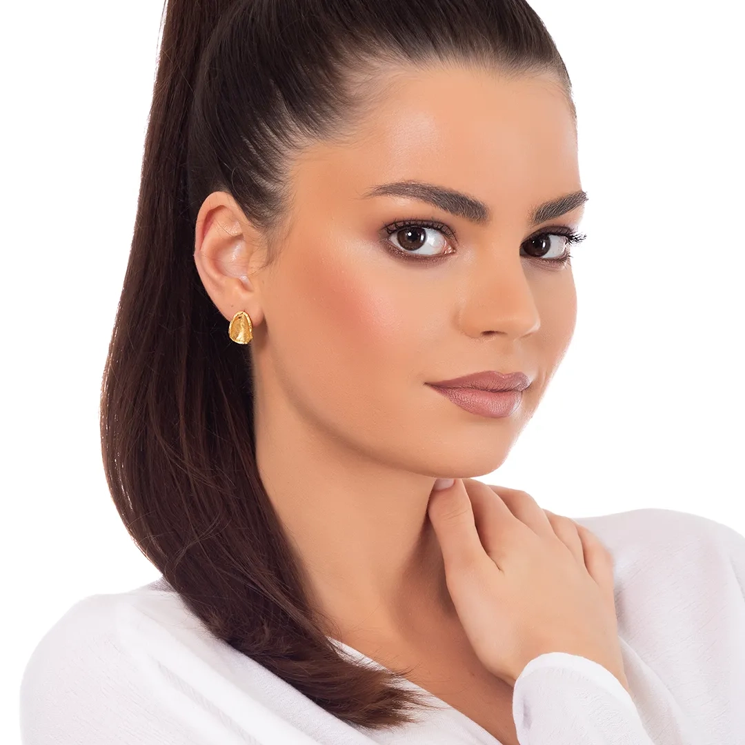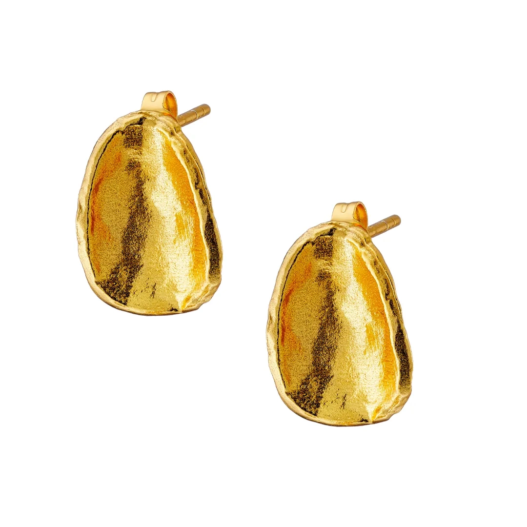 Oxzen ασημένιο σκουλαρίκι επιχρυσωμένο οβάλ με ιδιαίτερο σχήμα