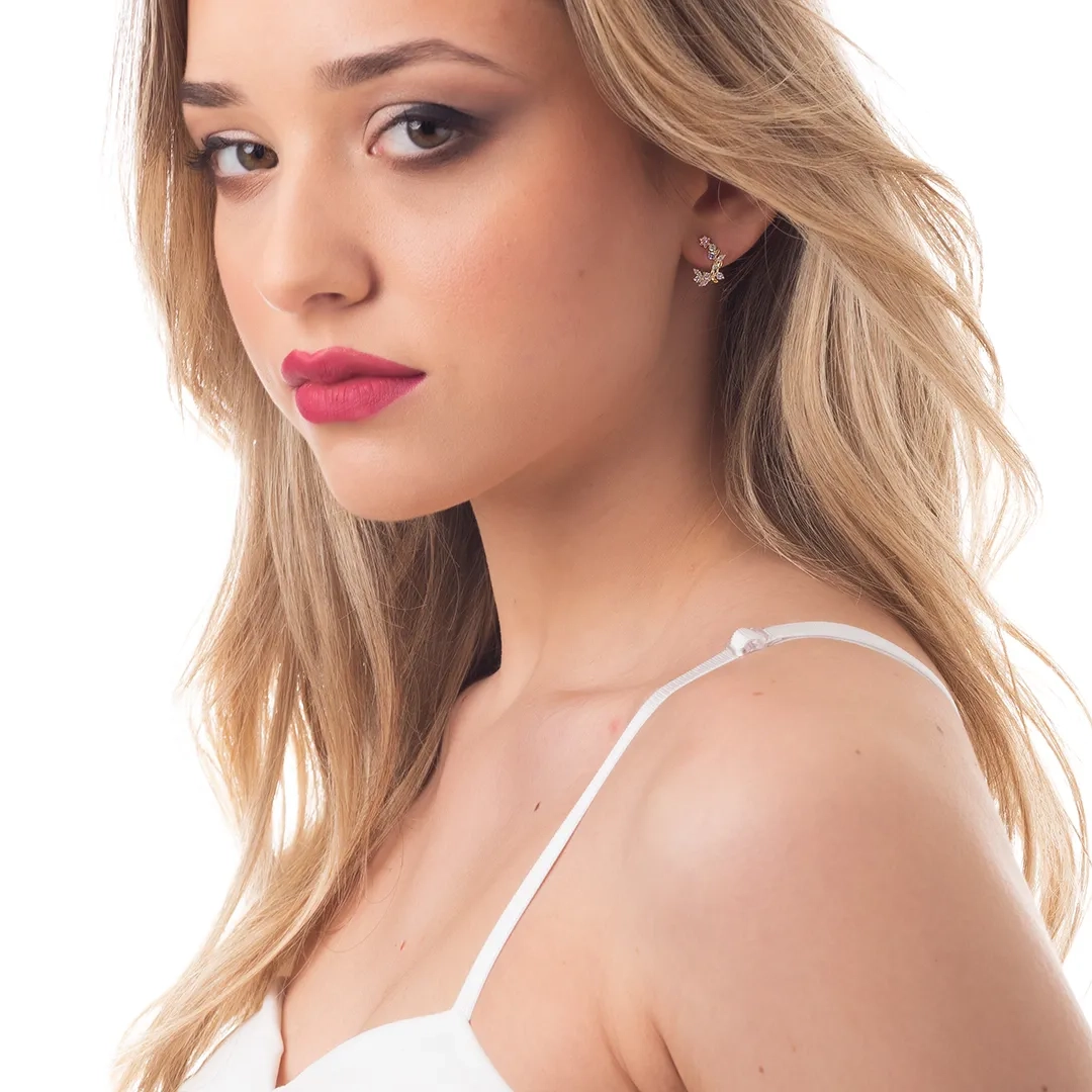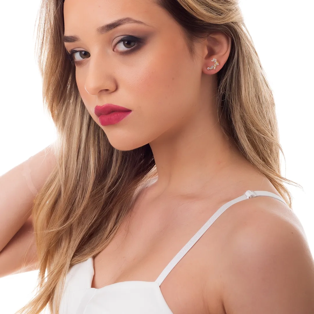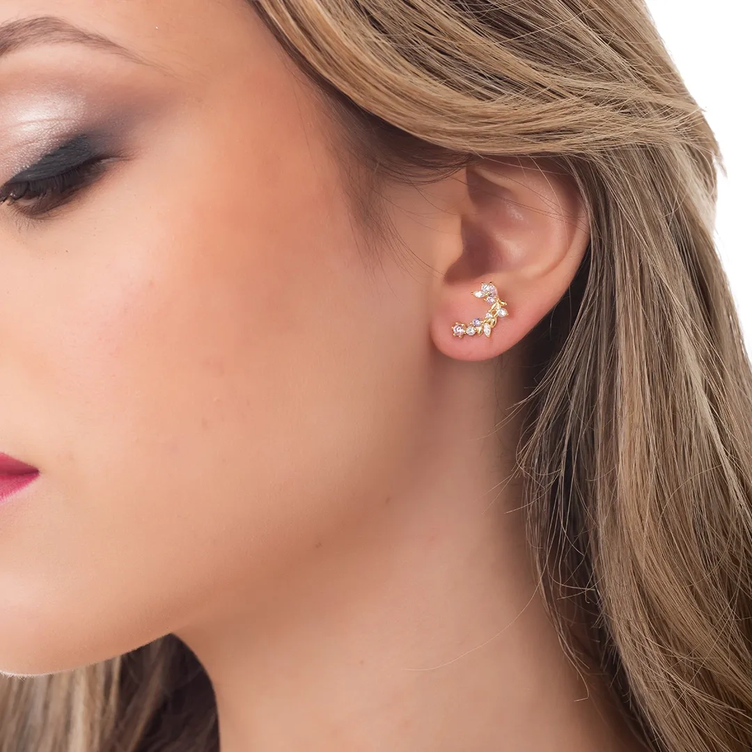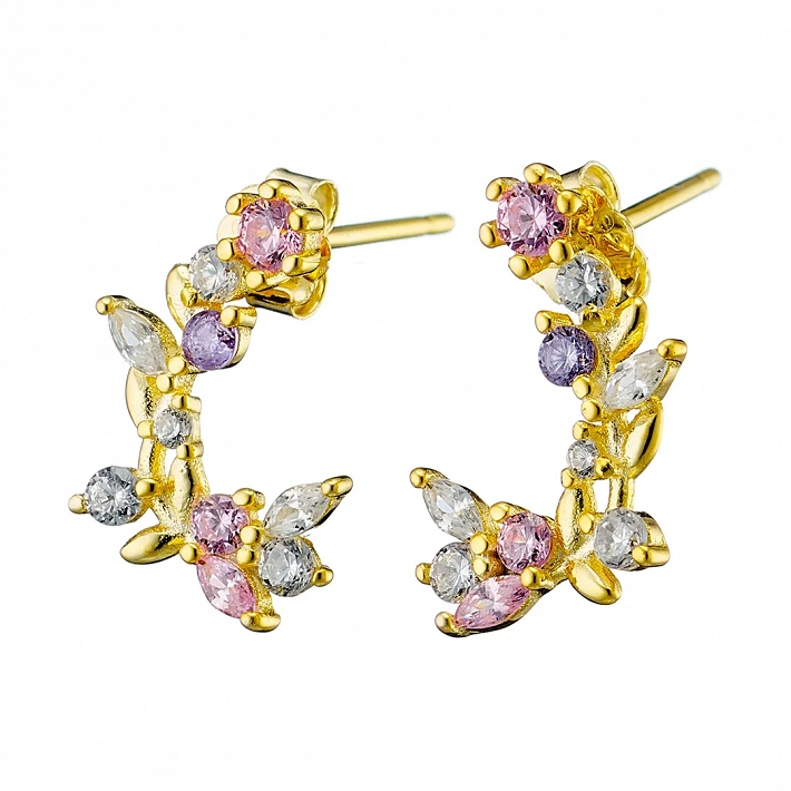 Oxzen ασημένιο σκουλαρίκι ημικυκλικό με λουλούδια και πέτρες ζιργκόν