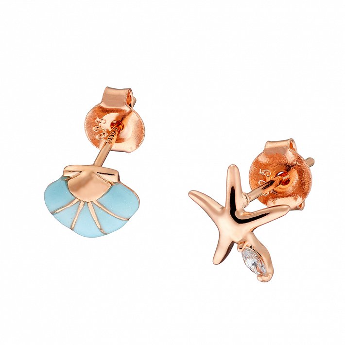 Oxzen ασημένιο σκουλαρίκι καρφωτό κοχύλι και αστερίας