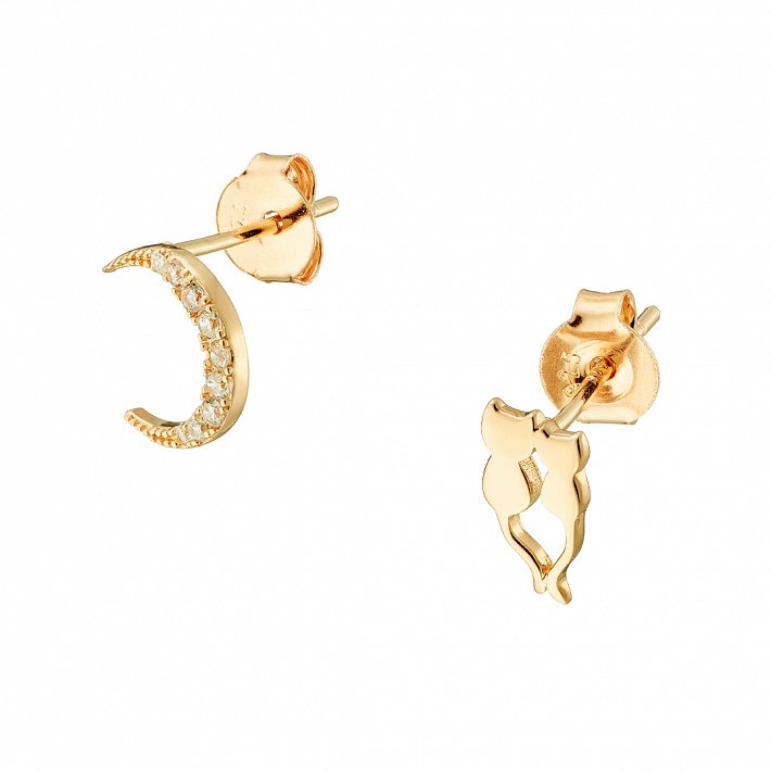 Oxzen ασημένιο σκουλαρίκι καρφωτό με γατούλες