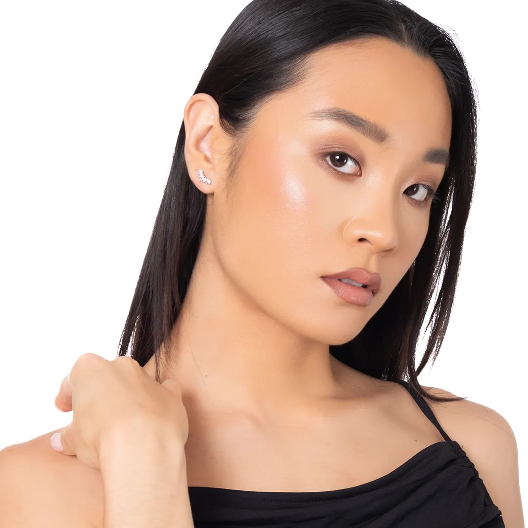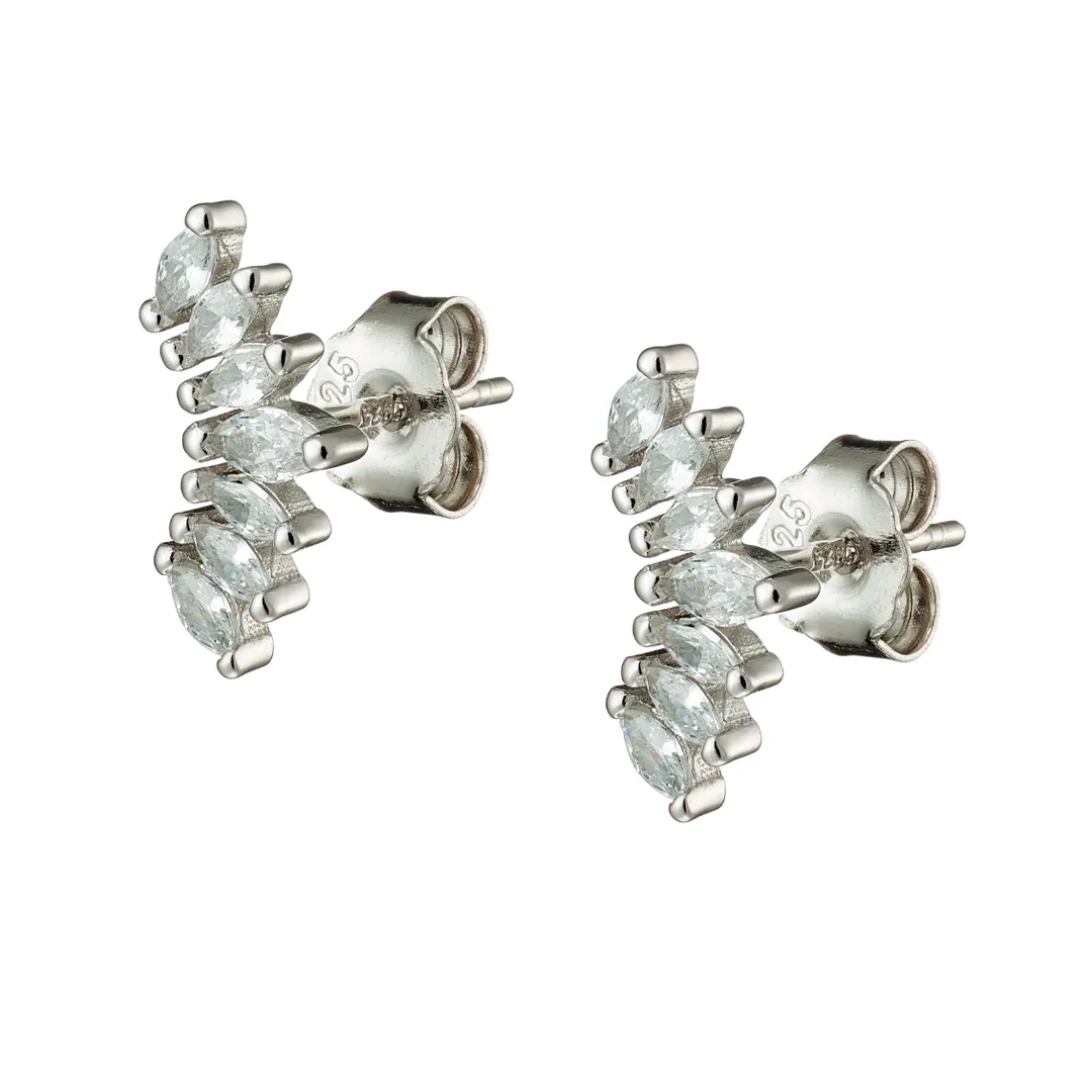 Oxzen ασημένιο σκουλαρίκι καρφωτό με λευκά ζιργκόν