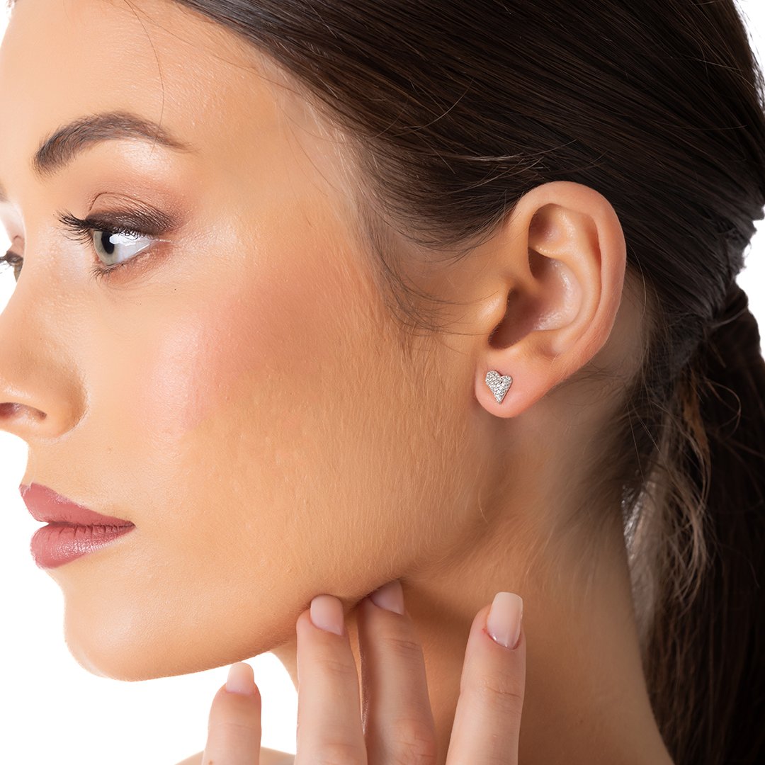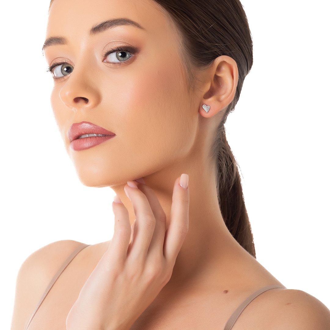 Oxzen ασημένιο σκουλαρίκι καρφωτό με λευκά ζιργκόν