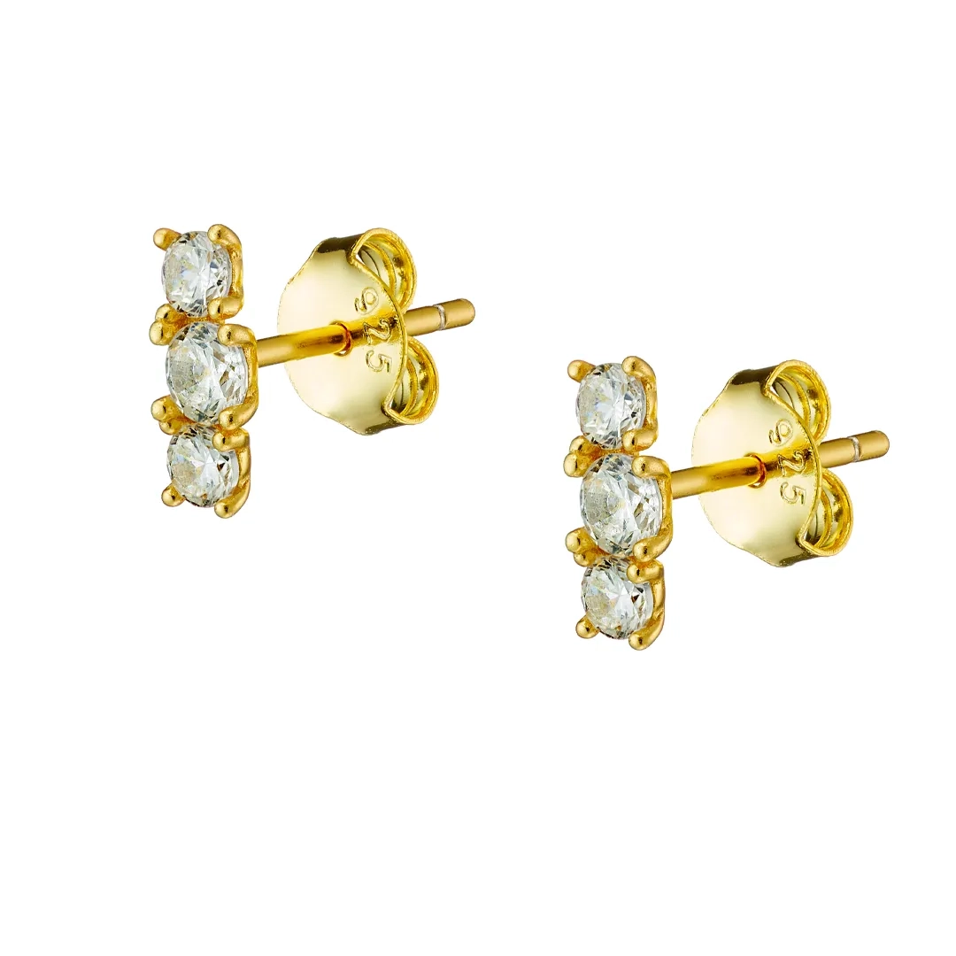 Oxzen ασημένιο σκουλαρίκι καρφωτό με λευκά ζιργκόν