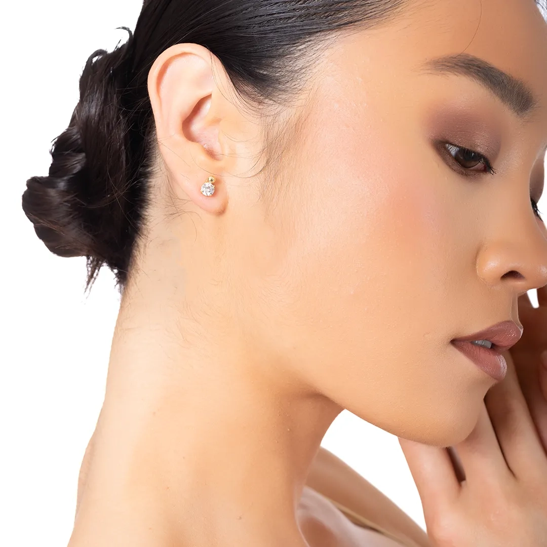 Oxzen ασημένιο σκουλαρίκι καρφωτό με λευκό ζιργκόν