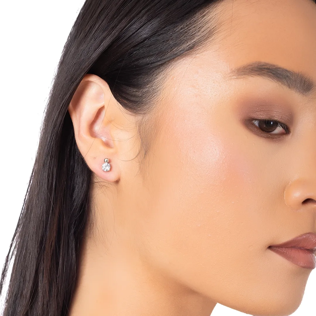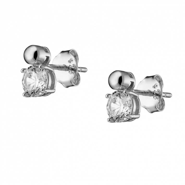 Oxzen ασημένιο σκουλαρίκι καρφωτό με λευκό ζιργκόν