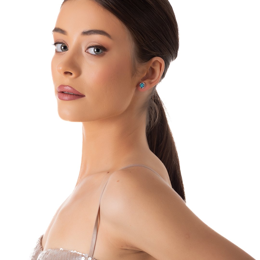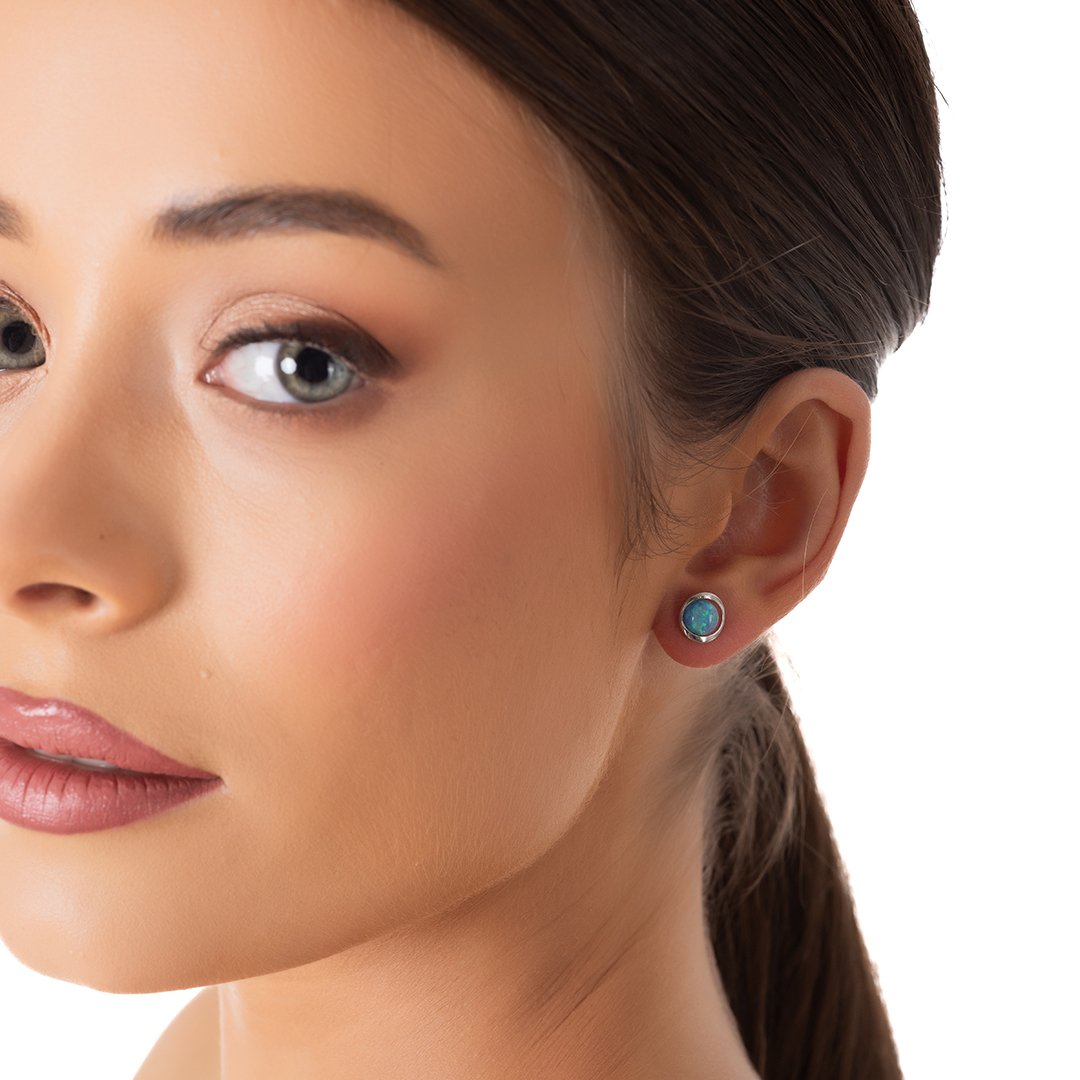 Oxzen ασημένιο σκουλαρίκι καρφωτό με οπάλιο