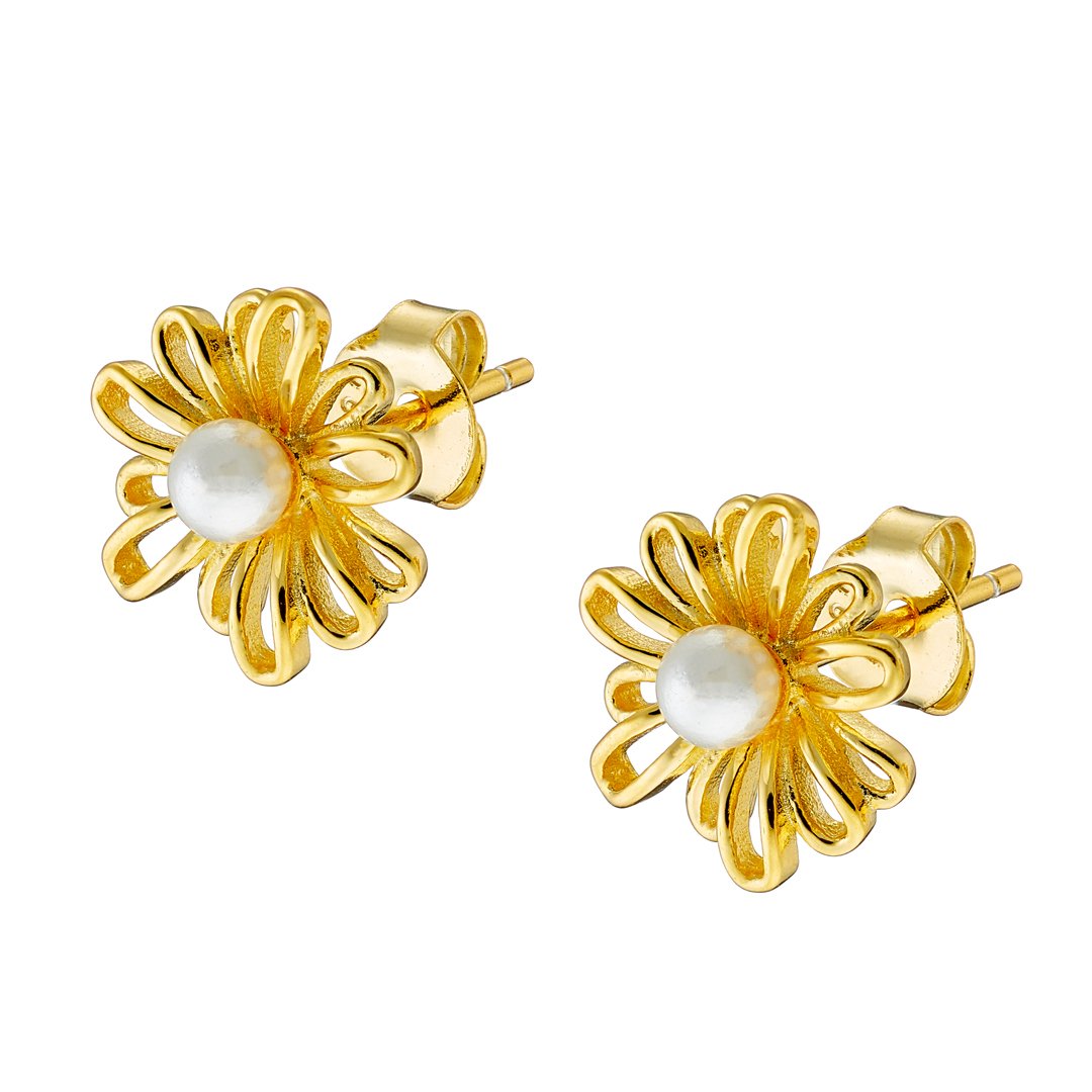Oxzen ασημένιο σκουλαρίκι καρφωτό με πέρλα