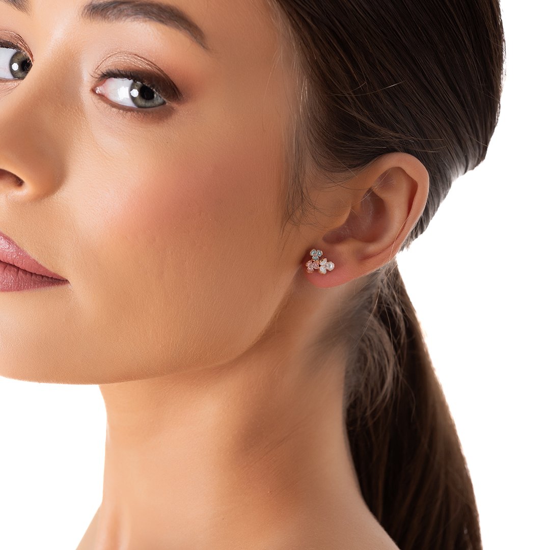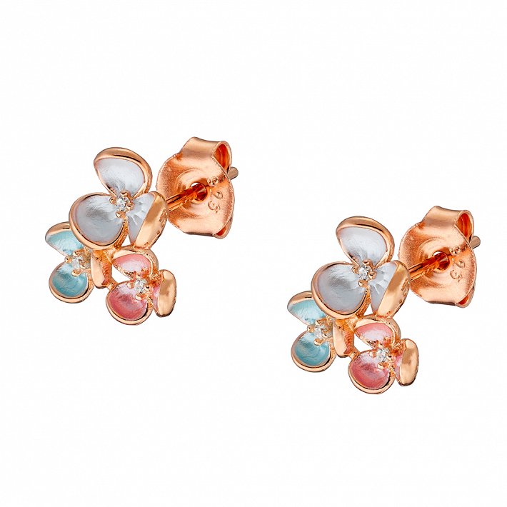 Oxzen ασημένιο σκουλαρίκι καρφωτό, πολύχρωμα λουλούδια