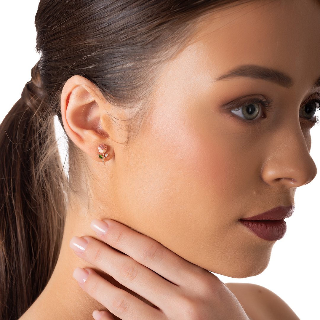 Oxzen ασημένιο σκουλαρίκι καρφωτό τριαντάφυλλο