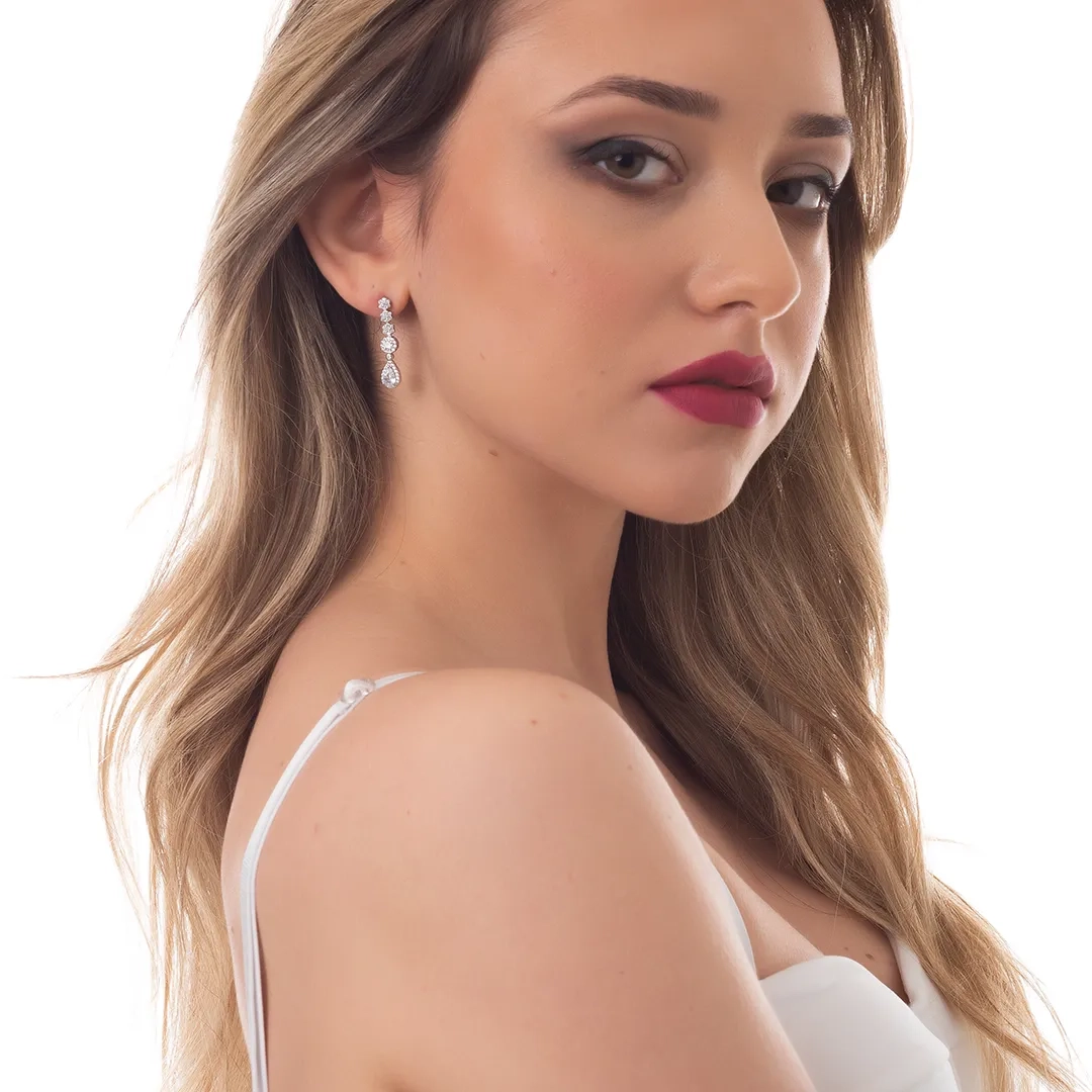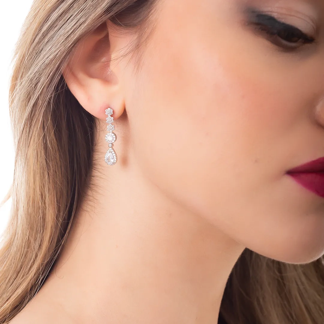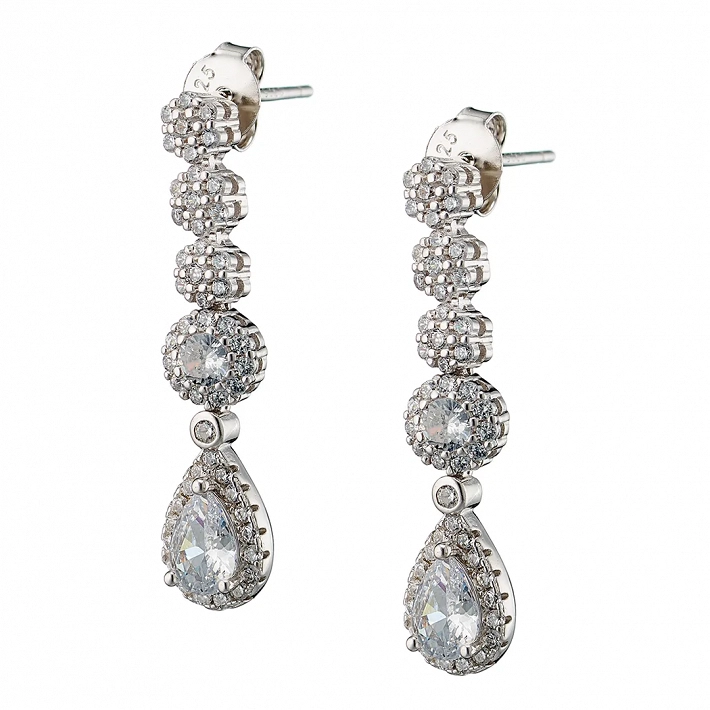 Oxzen ασημένιο σκουλαρίκι κρεμαστό με λευκά ζιργκόν