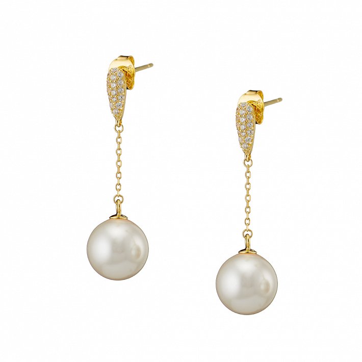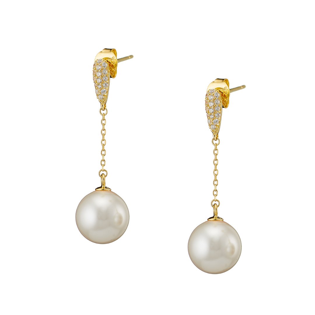 Oxzen ασημένιο σκουλαρίκι κρεμαστό με πέρλα