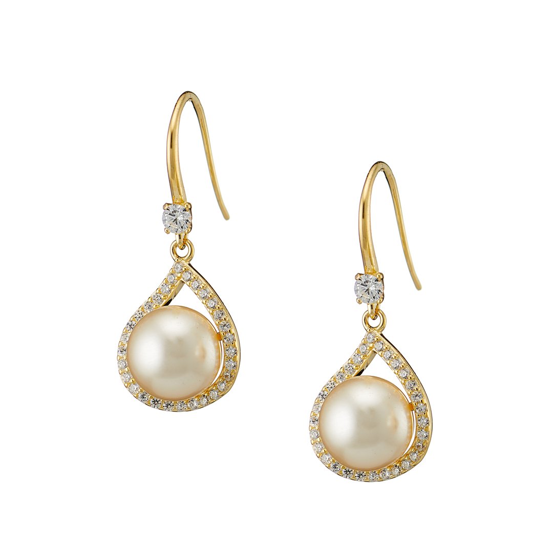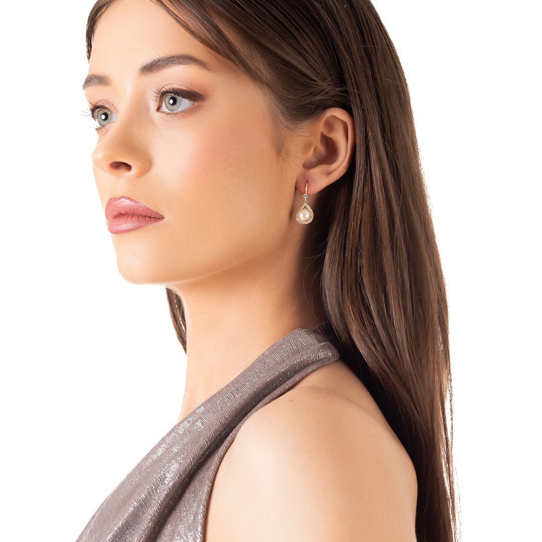 Oxzen ασημένιο σκουλαρίκι κρεμαστό με πέρλα και ζιργκόν