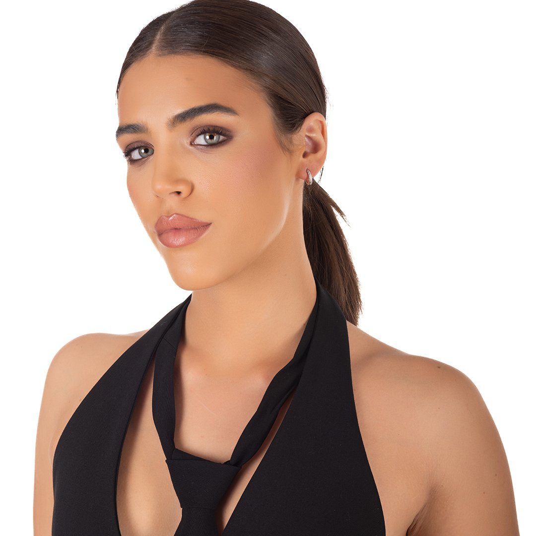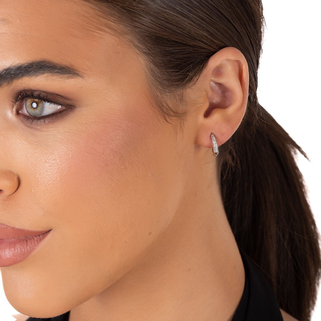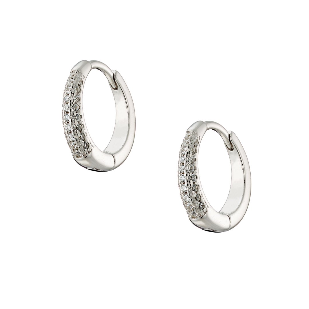 Oxzen ασημένιο σκουλαρίκι κρίκος 14mm με λευκά ζιργκόν