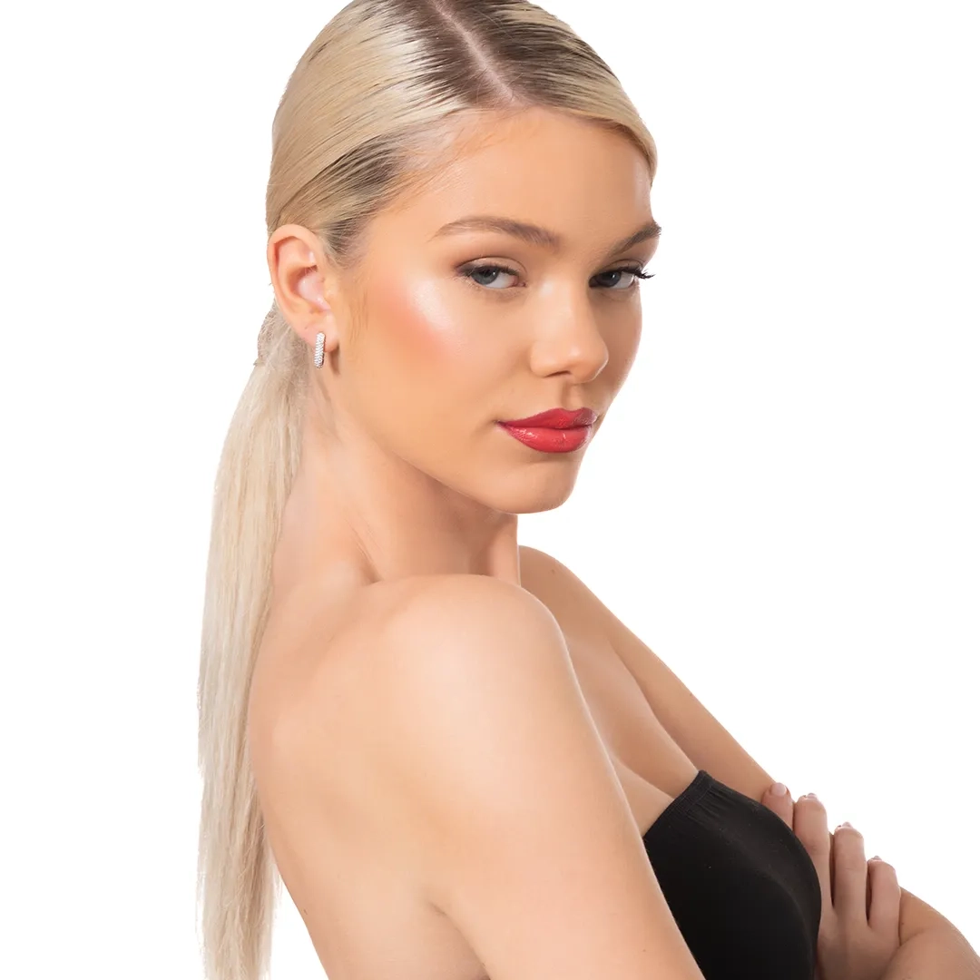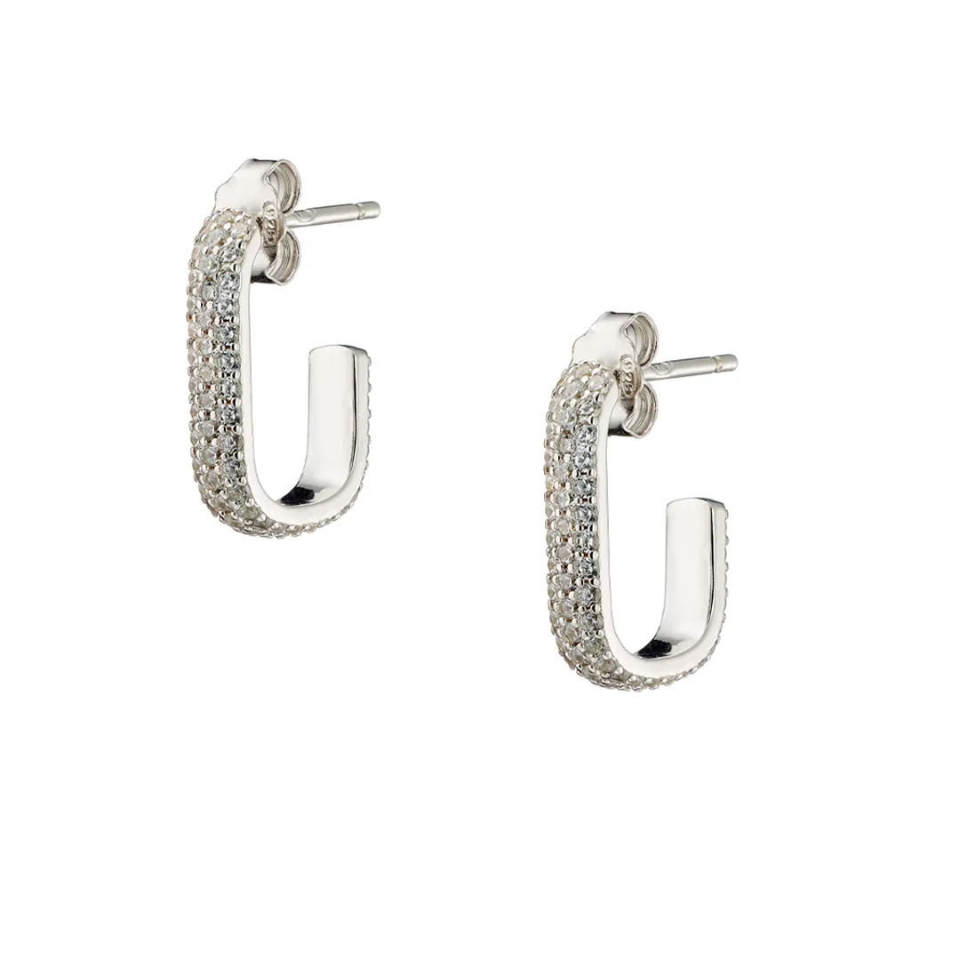 Oxzen ασημένιο σκουλαρίκι κρίκος τετράγωνος με λευκά ζιργκόν