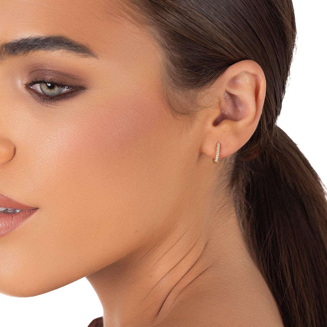 Oxzen ασημένιο σκουλαρίκι κρίκος τετράγωνος με ζιργκόν