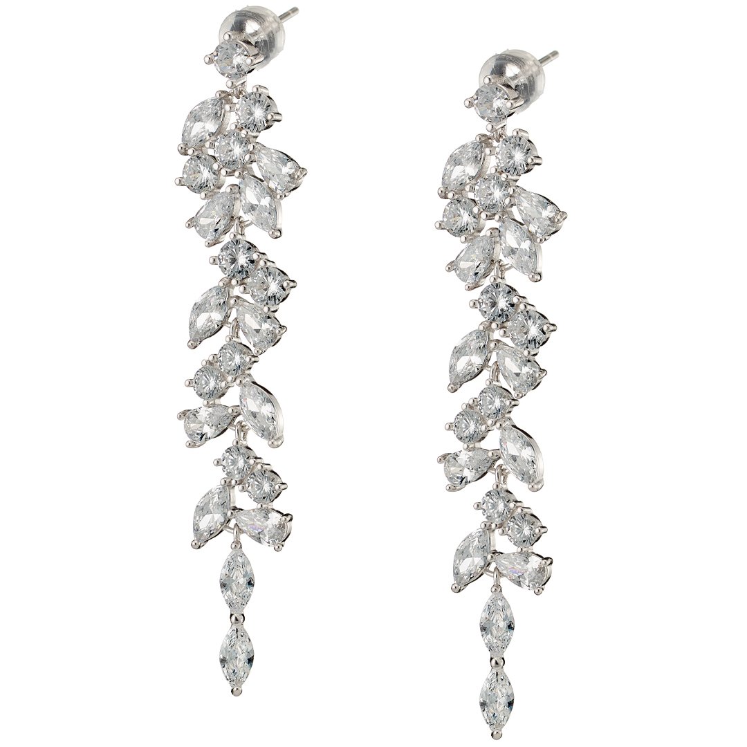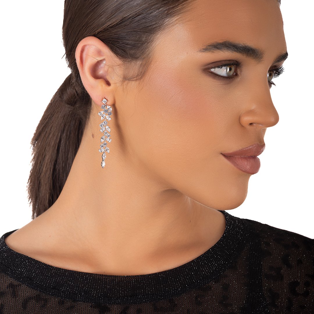 Oxzen ασημένιο σκουλαρίκι μακρύ με λευκά ζιργκόν