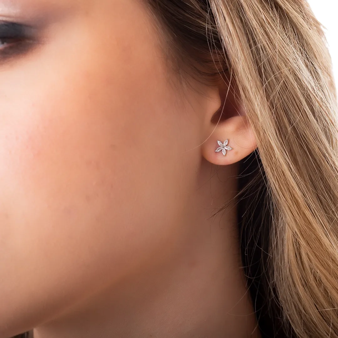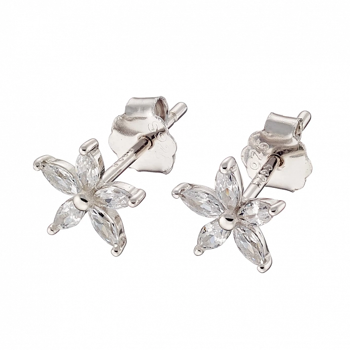 Oxzen ασημένιο σκουλαρίκι μαργαρίτα με ζιργκόν