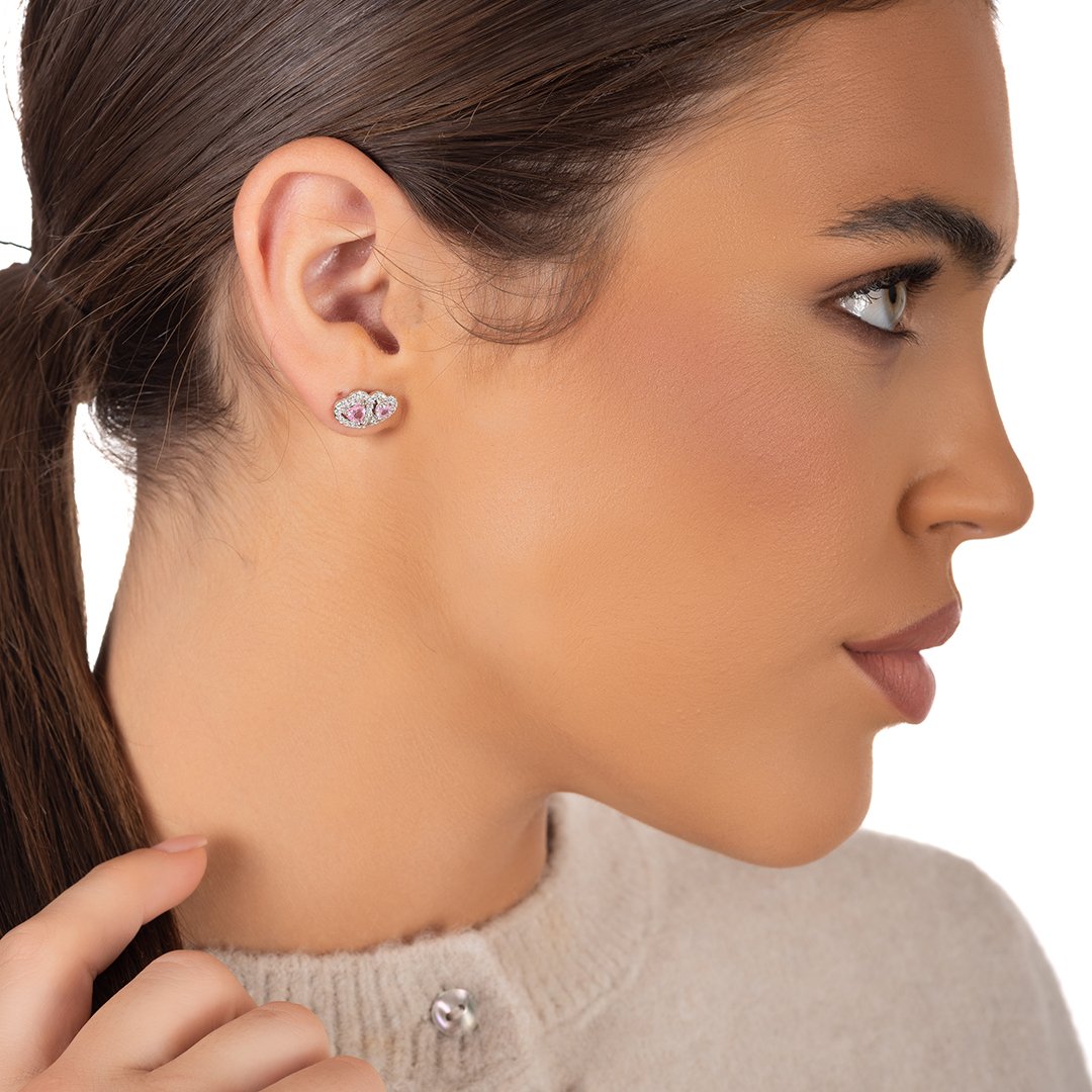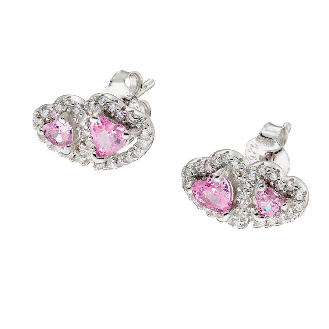 Oxzen ασημένιο σκουλαρίκι με διπλή καρδιά ζιργκόν