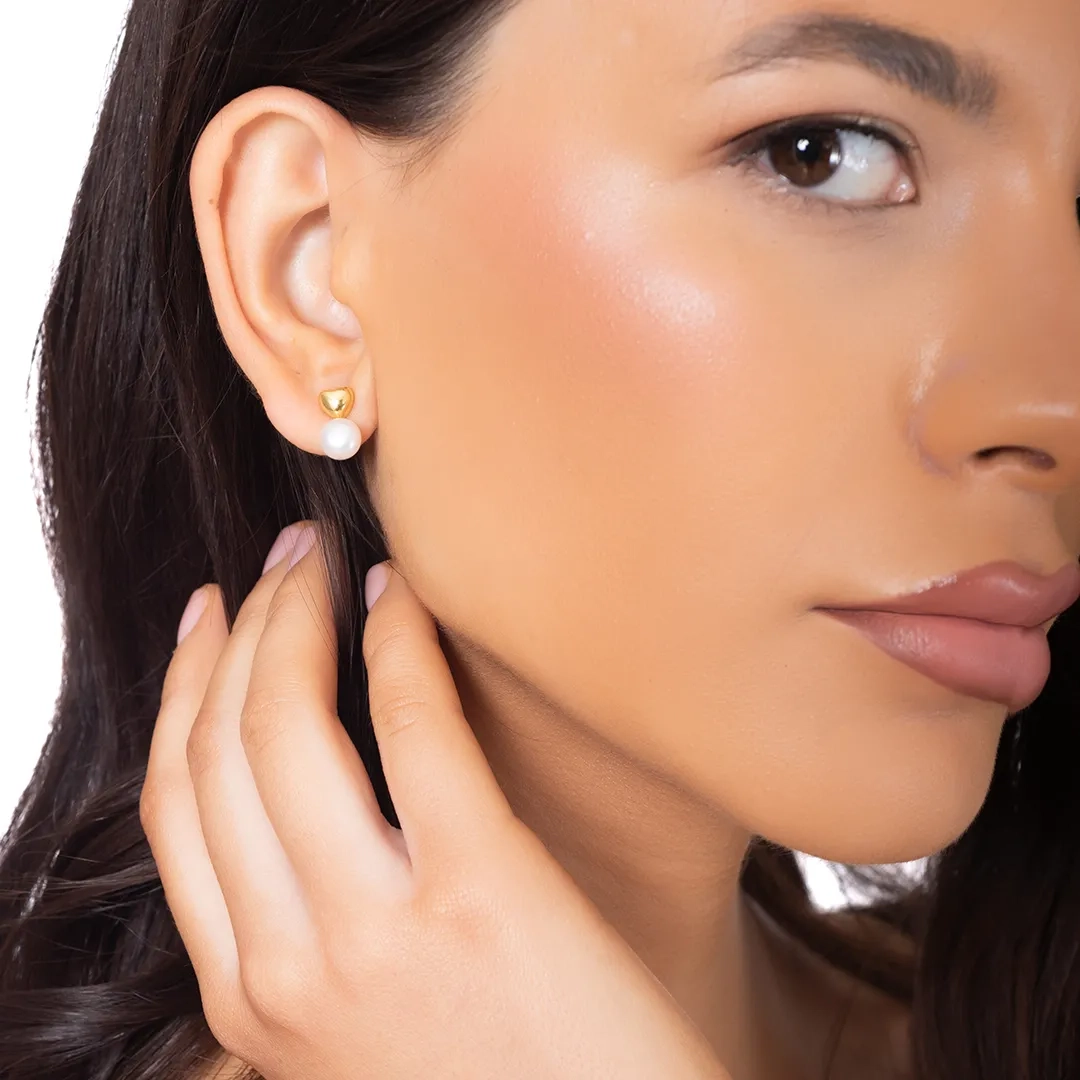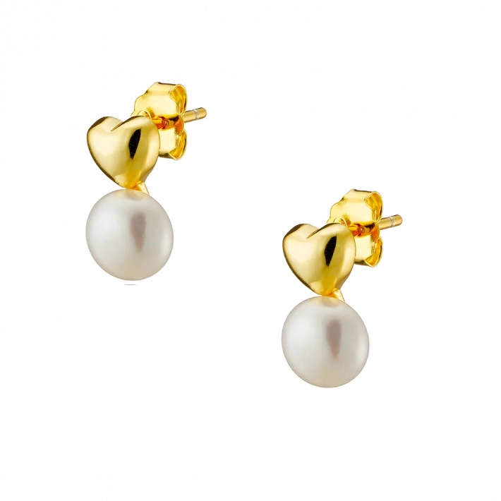 Oxzen ασημένιο σκουλαρίκι με πέρλα και καρδιά