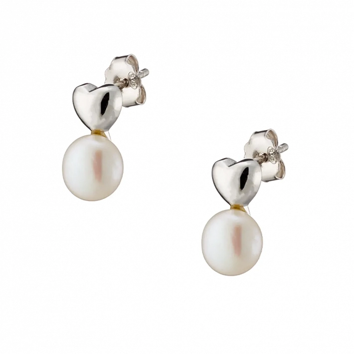 Oxzen ασημένιο σκουλαρίκι με πέρλα και καρδιά