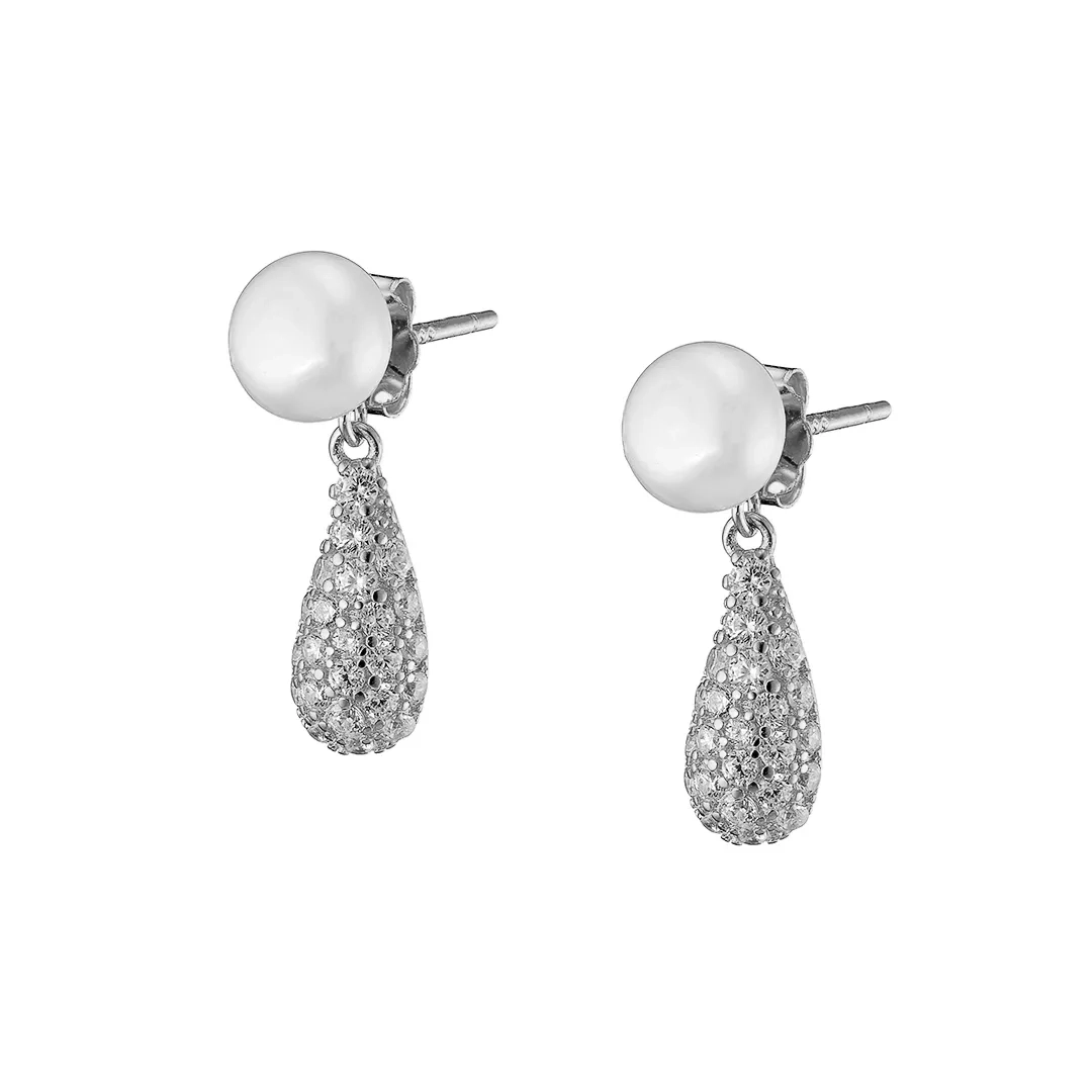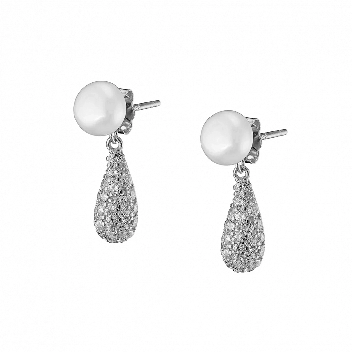 Oxzen ασημένιο σκουλαρίκι με πέρλα και λευκά ζιργκόν
