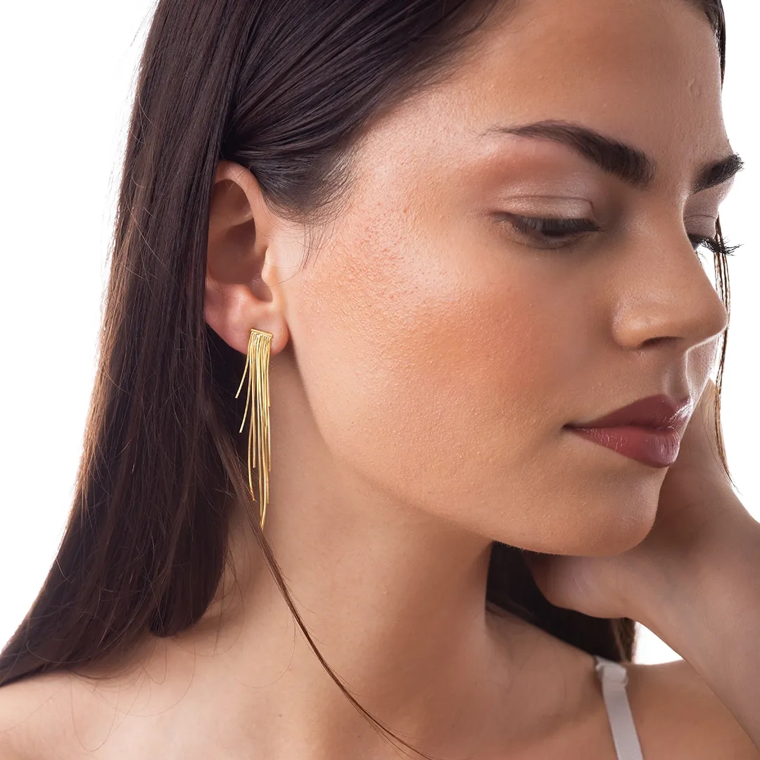 Oxzen ασημένιο σκουλαρίκι με πολλές αλυσίδες μακρύ κρεμαστό