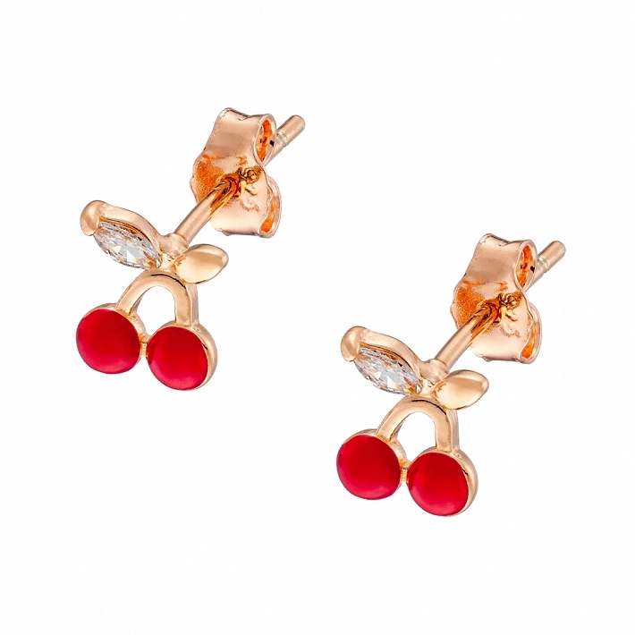 Oxzen ασημένιο σκουλαρίκι παιδικό-εφηβικό επιπλατινωμένο κερασάκι