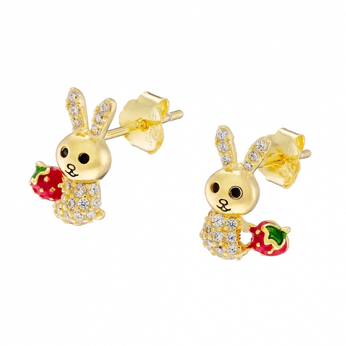 Oxzen ασημένιο σκουλαρίκι παιδικό-εφηβικό επιπλατινωμένο λαγουδάκι με λευκά ζιργκόν