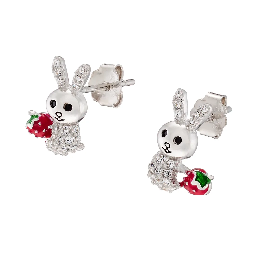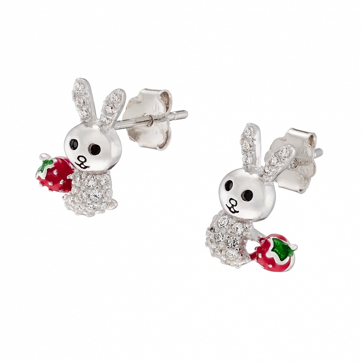 Oxzen ασημένιο σκουλαρίκι παιδικό-εφηβικό επιπλατινωμένο λαγουδάκι με λευκά ζιργκόν