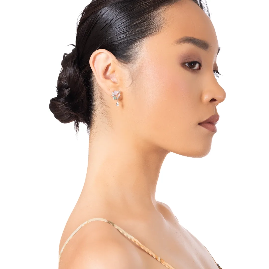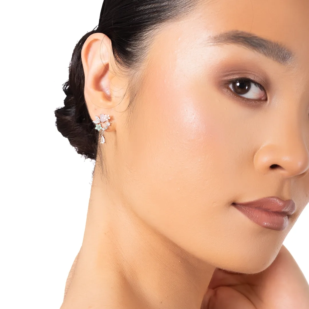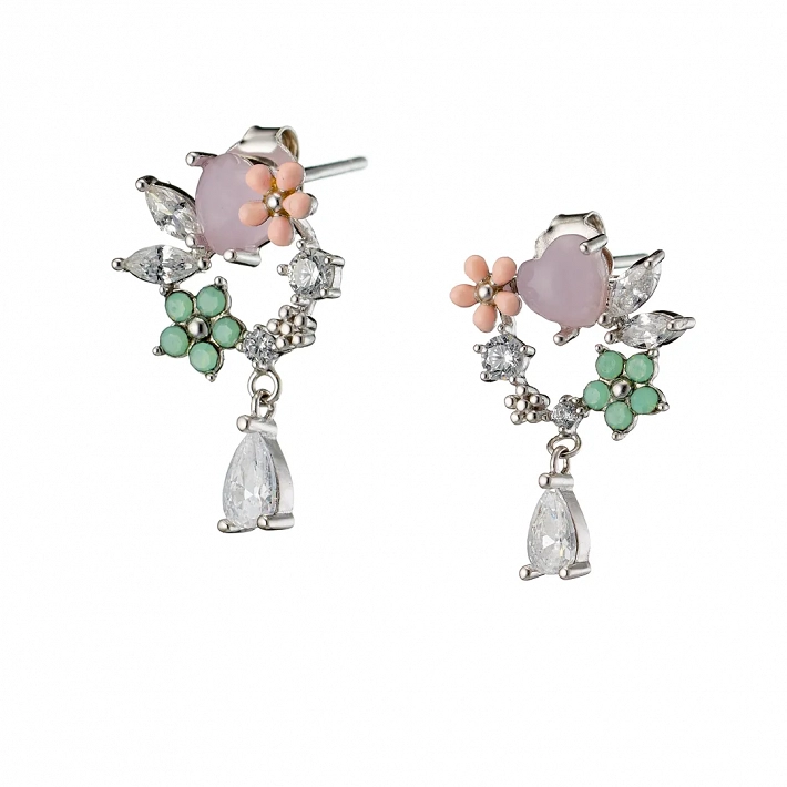 Oxzen ασημένιο σκουλαρίκι στεφανάκι με ημιπολύτιμες πέτρες