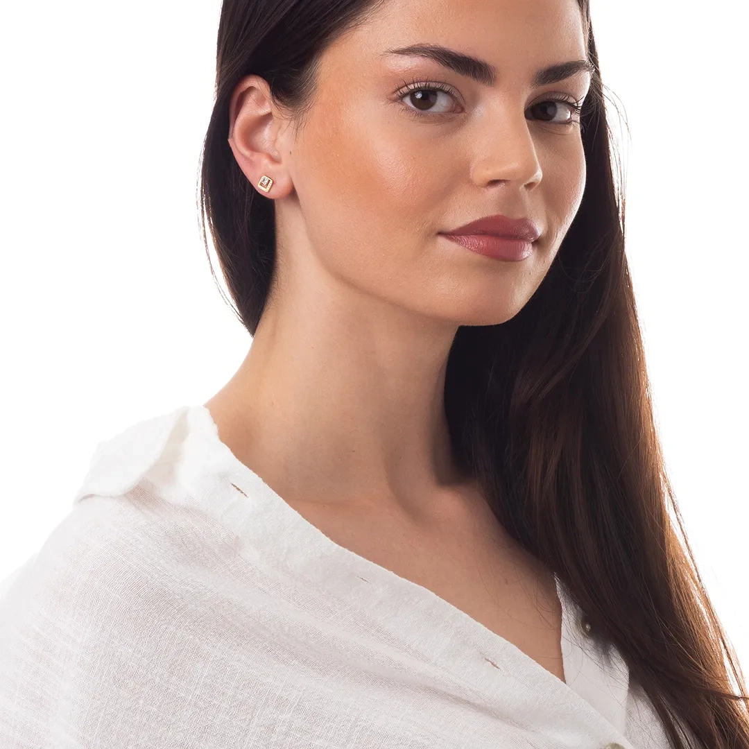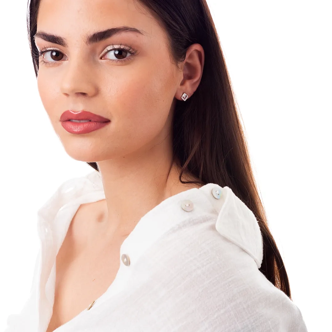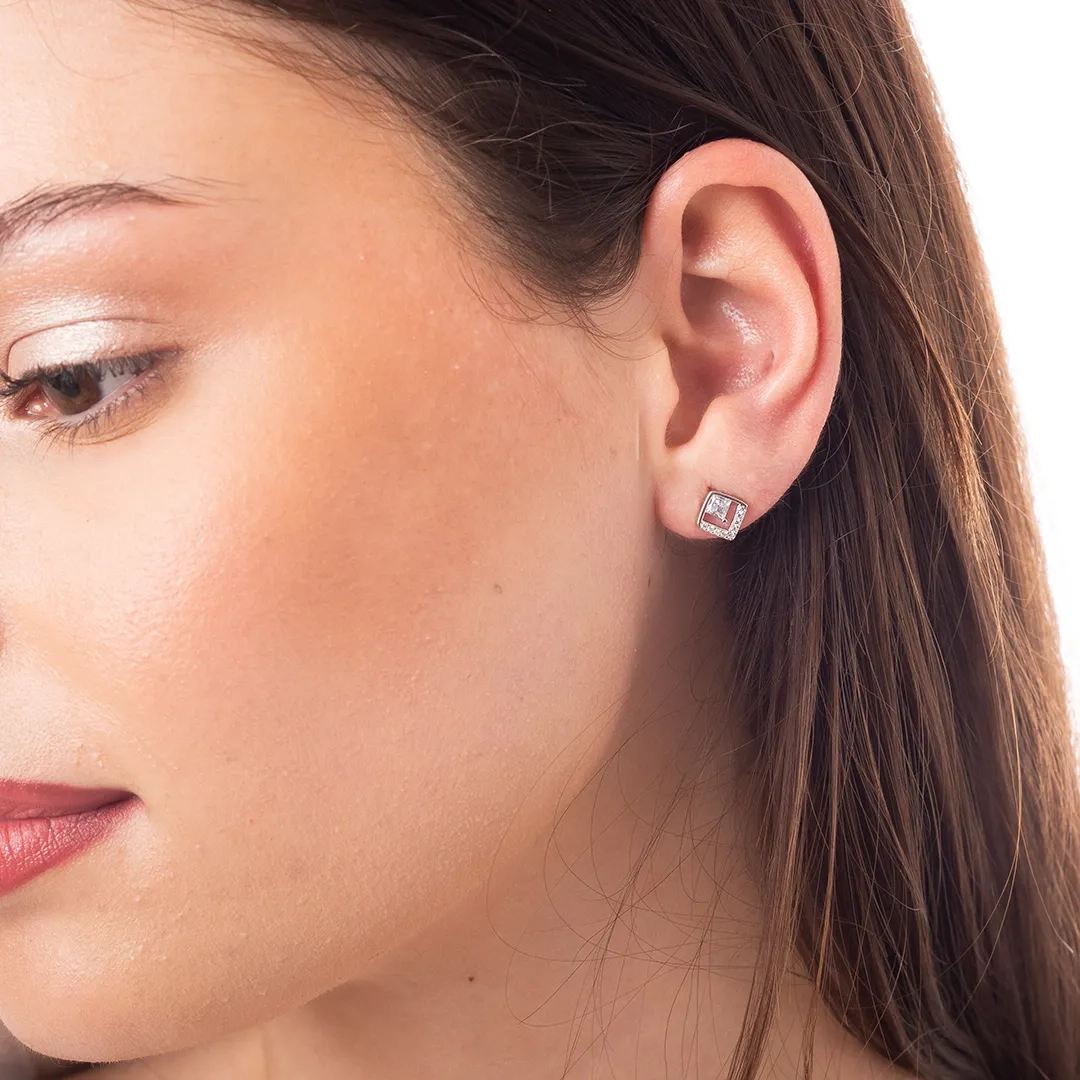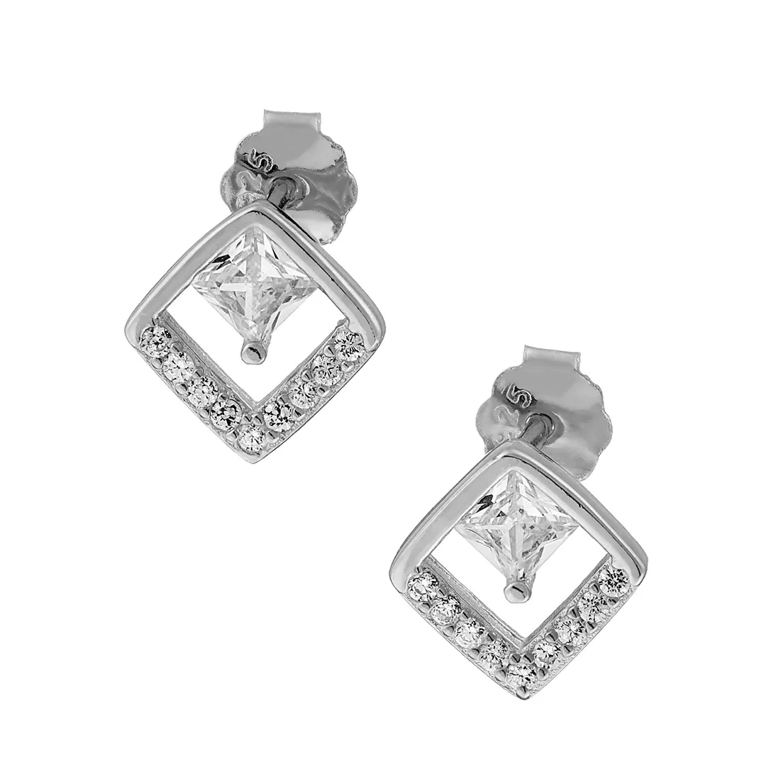 Oxzen ασημένιο σκουλαρίκι τετράγωνο με λευκά ζιργκόν