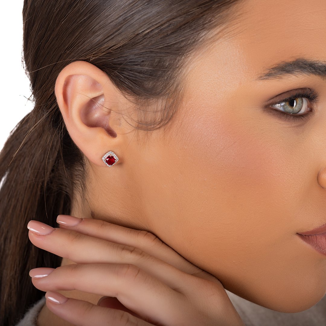 Oxzen ασημένιο σκουλαρίκι τετράγωνο με ζιργκόν