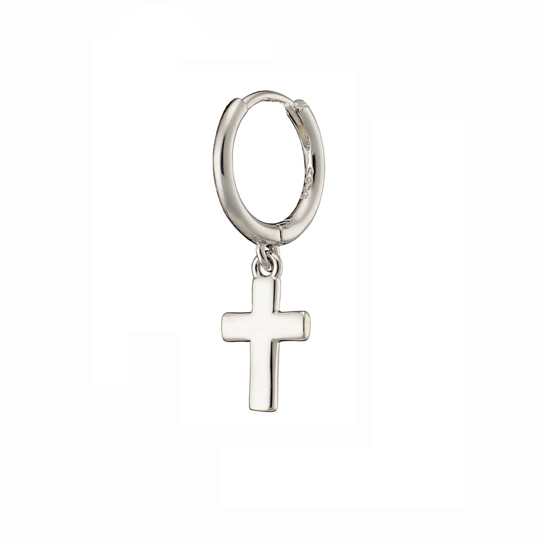 Oxzen ασημένιο σκουλαρίκι Unisex κρικάκι με σταυρό