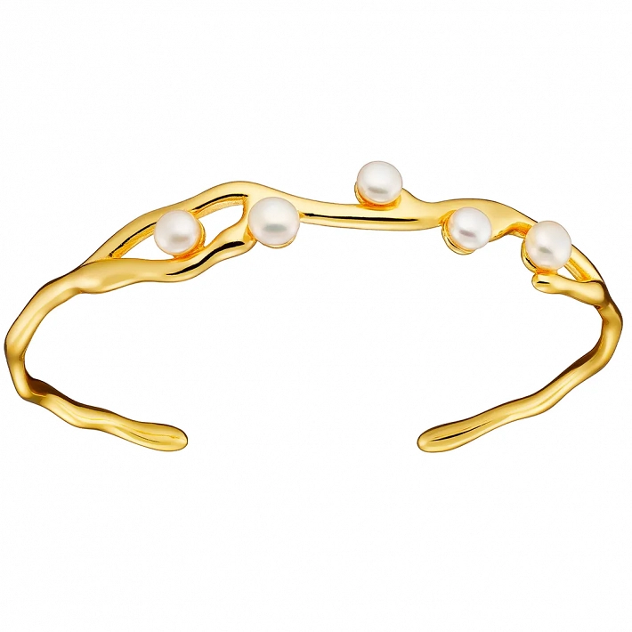 Oxzen ασημένιο βραχιόλι χειροποίητο, επιχρυσωμένο με πέρλες