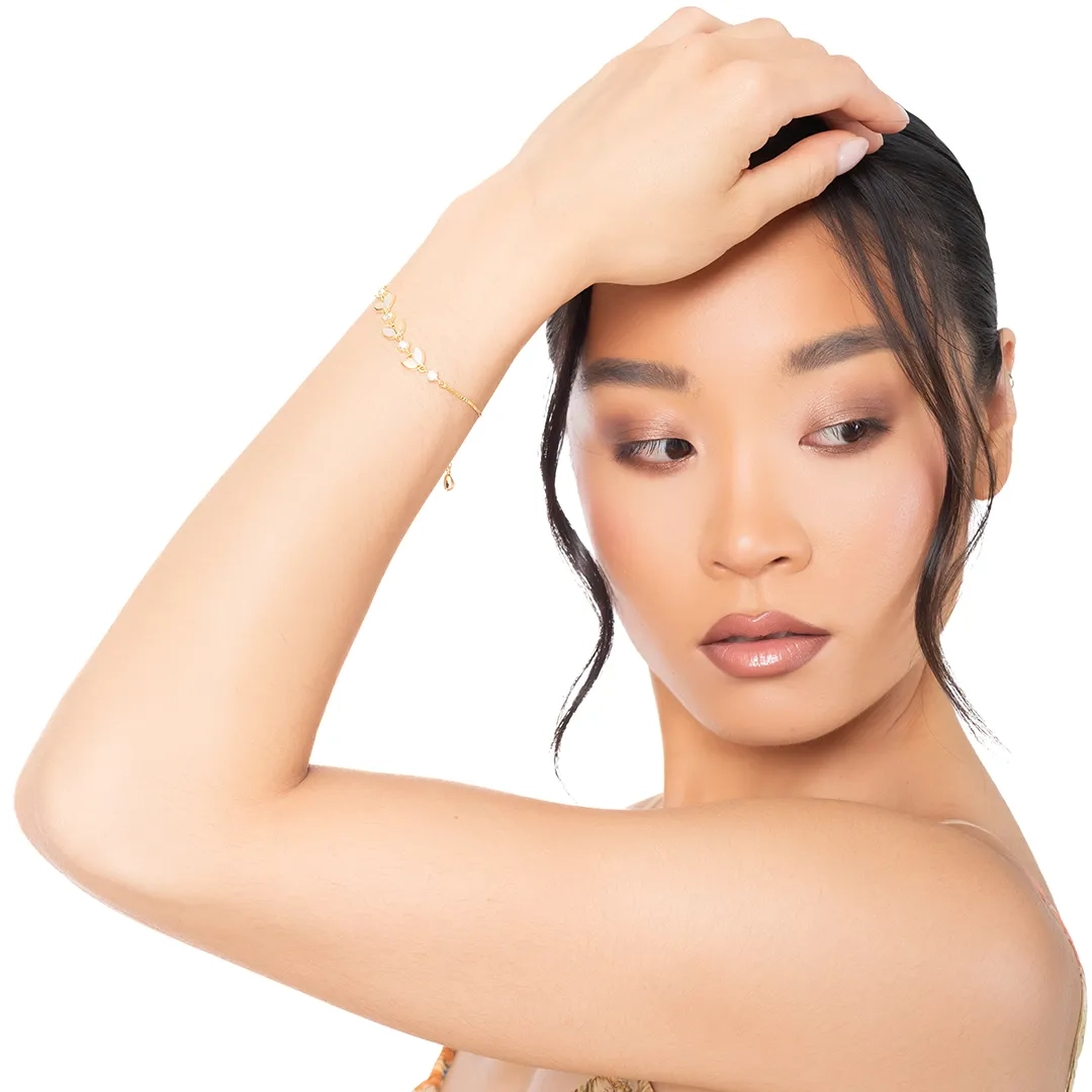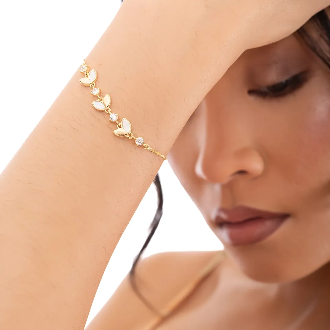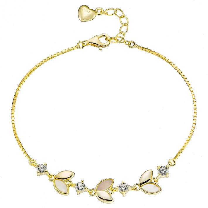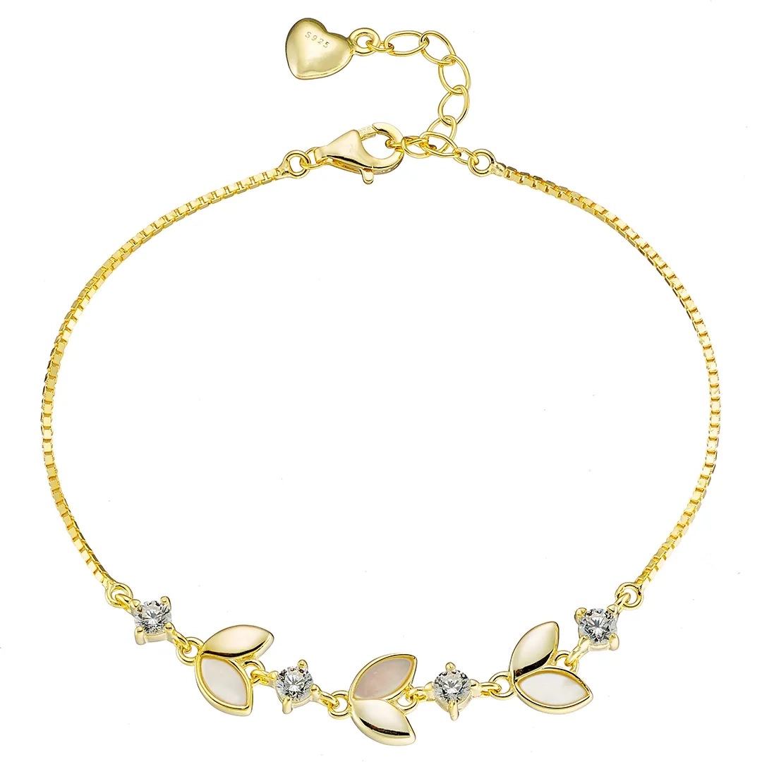 Oxzen ασημένιο βραχιόλι φύλλα με φίλντισι και λευκά ζιργκόν