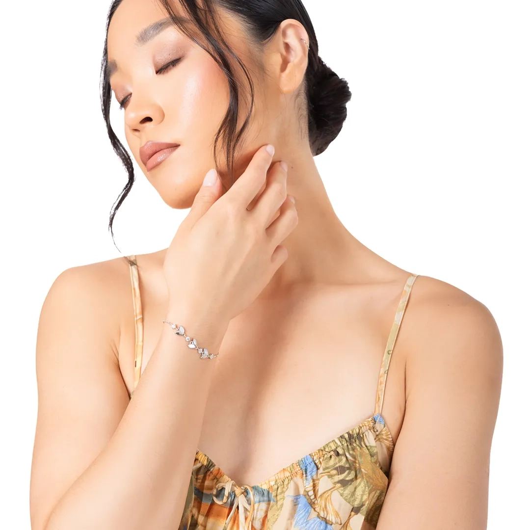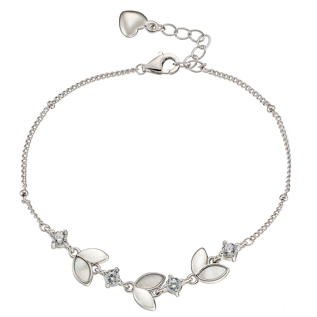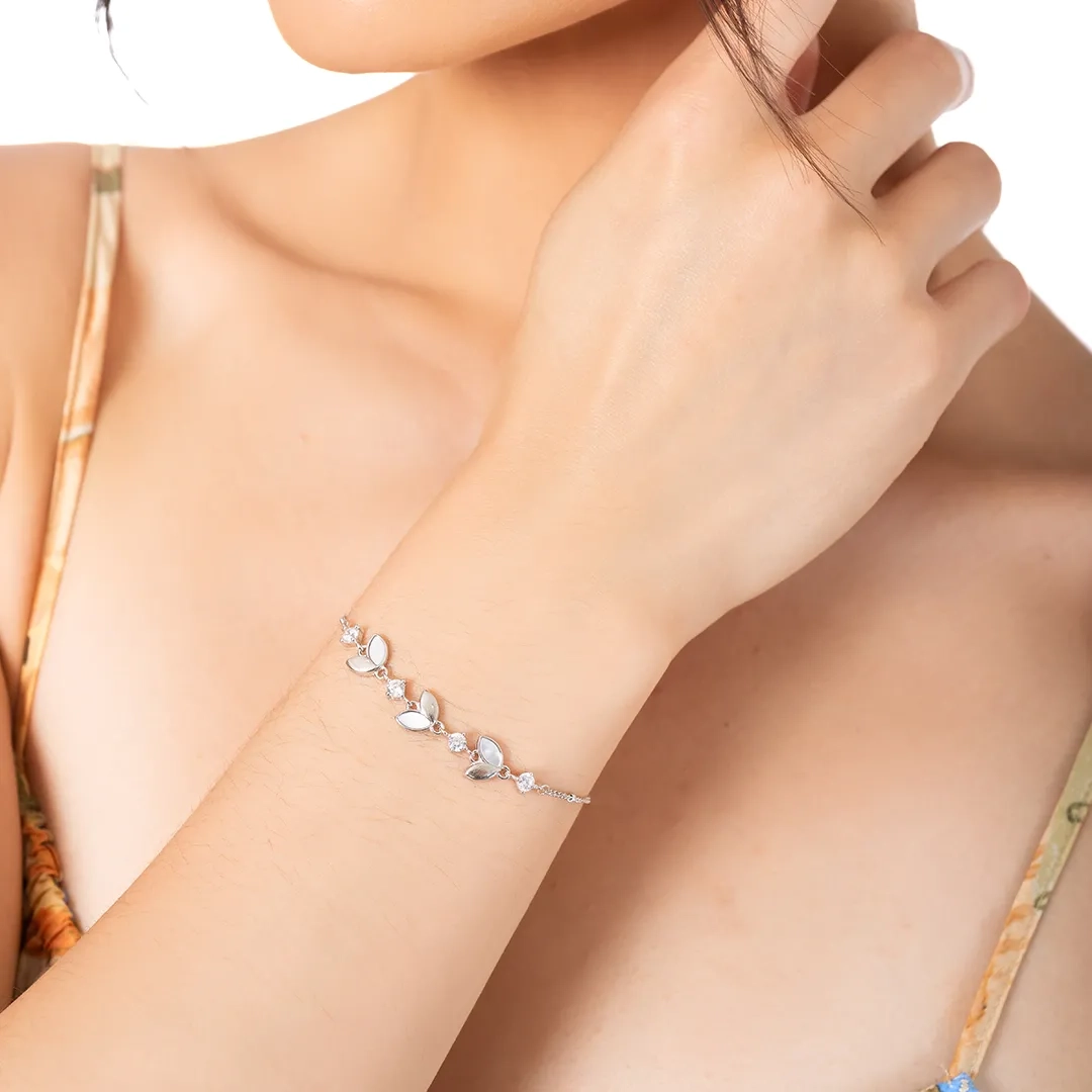 Oxzen ασημένιο βραχιόλι φύλλα με φίλντισι και λευκά ζιργκόν