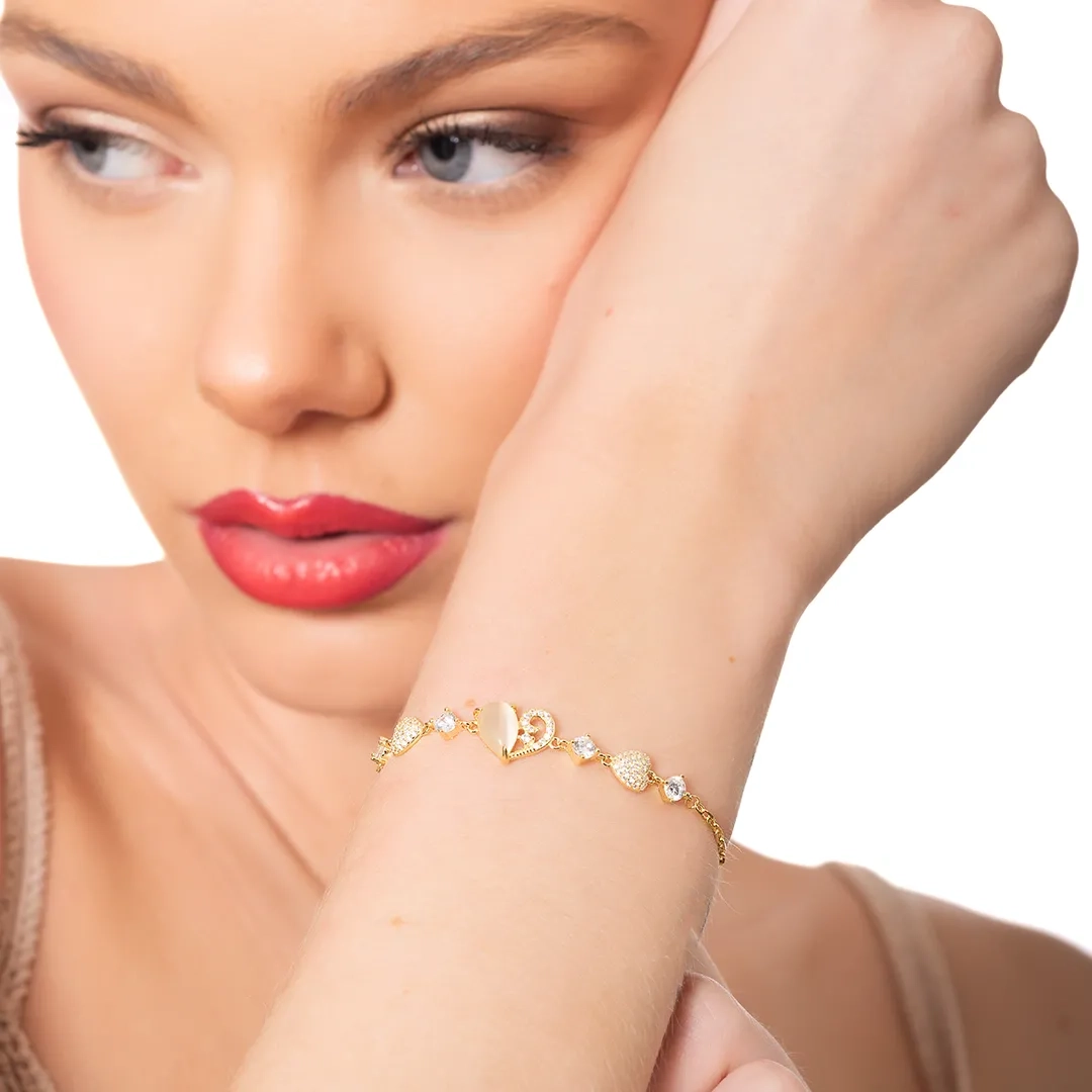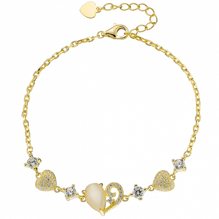 Oxzen ασημένιο βραχιόλι καρδιά με οπάλιο και λευκά ζιργκόν