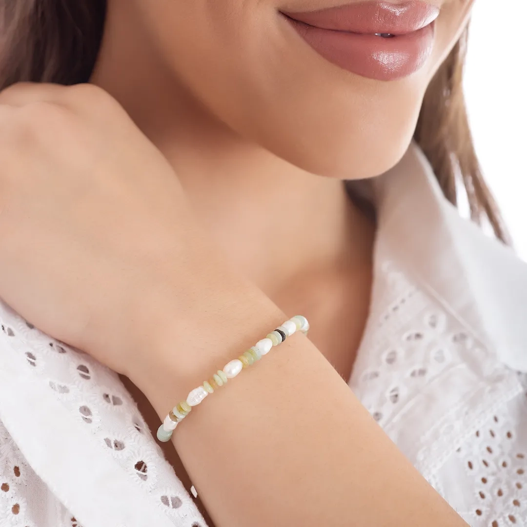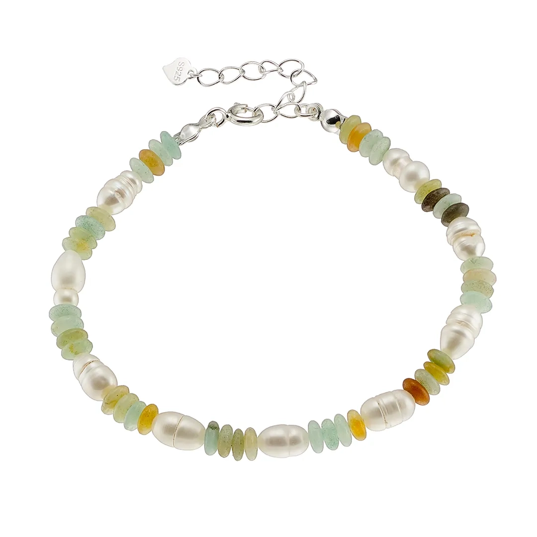 Oxzen ασημένιο βραχιόλι, με ημιπολύτιμες ορυκτές πέτρες